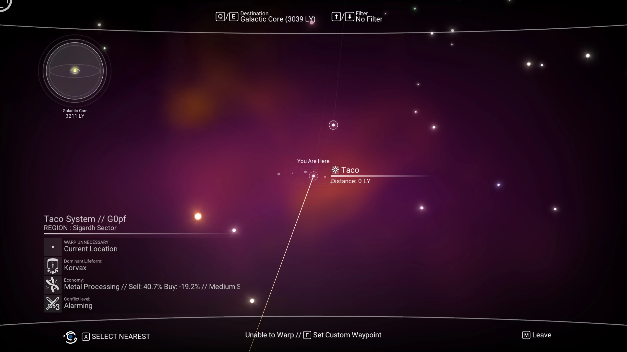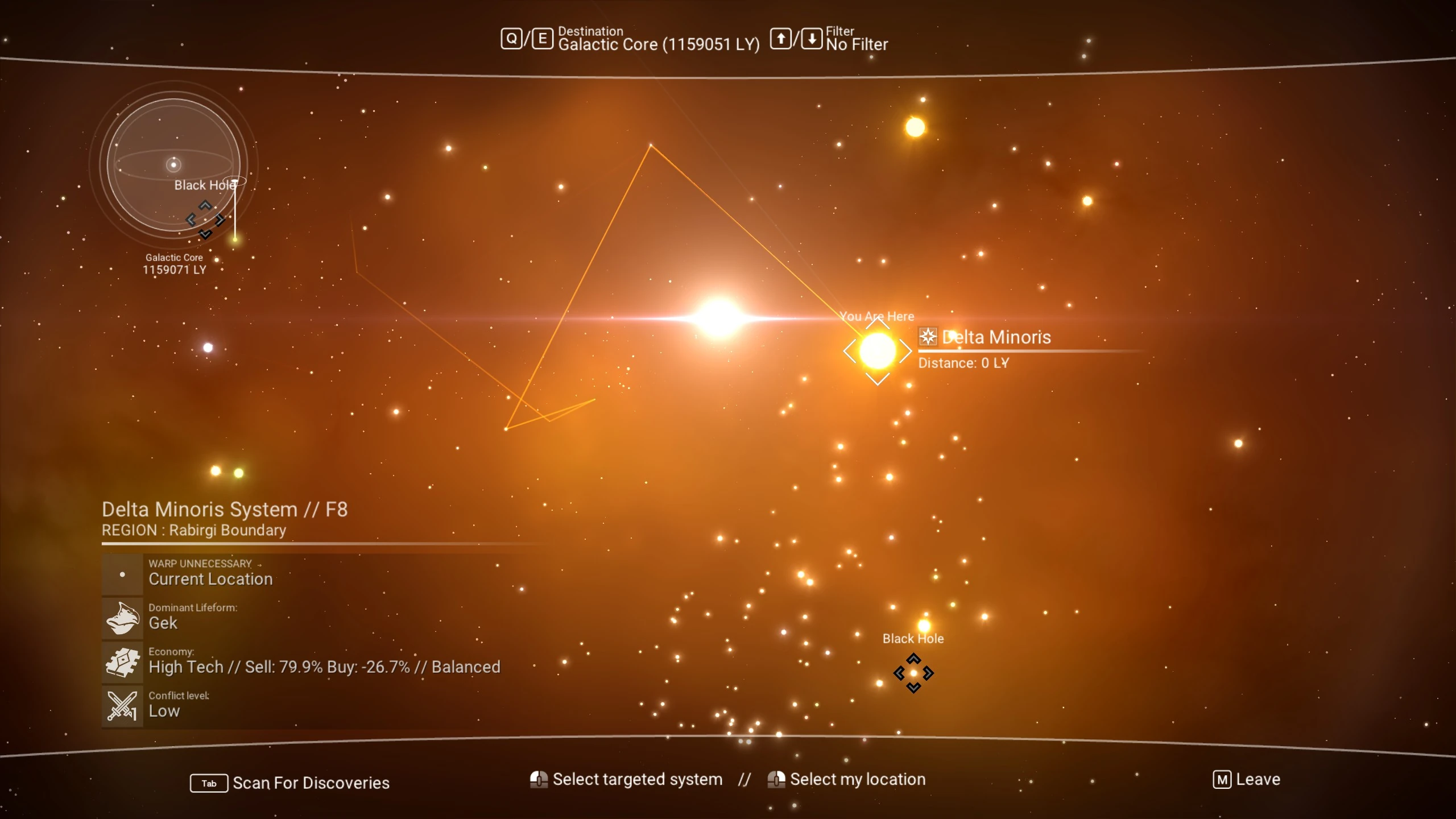 Beachte, dass man einen vollen Hyperantrieb benötigt, um das Zentrum von einem Übergangs-System per Warp zu erreichen.