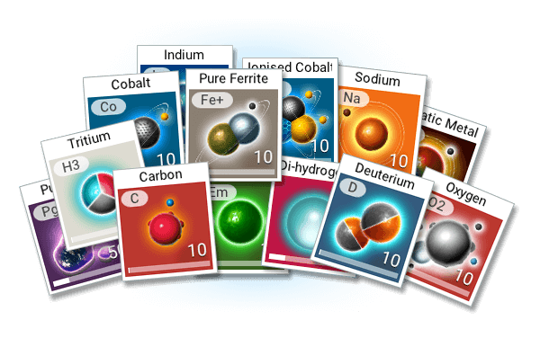 - Andere Elemente (Silber, Gold, magnetisiertes Ferrit und Natrium) können als Ressourcenansammlungen auf jedem Planeten entstehen.