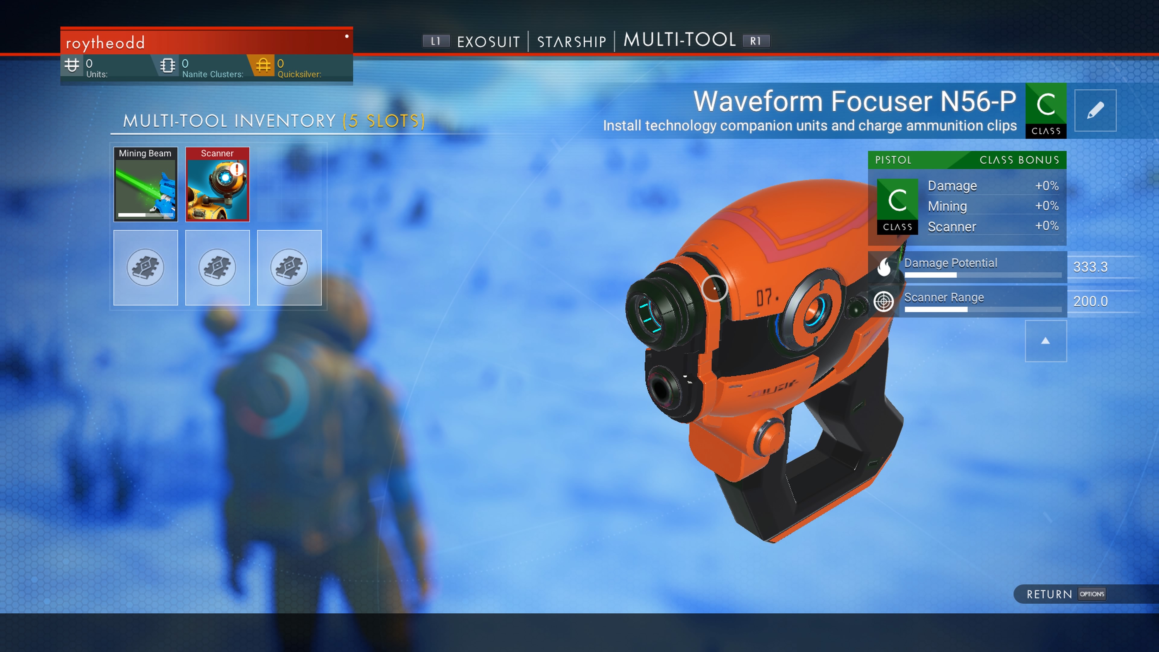 Los jugadores comienzan el juego con una multiherramienta, aunque hay varias formas de reemplazar el modelo original.