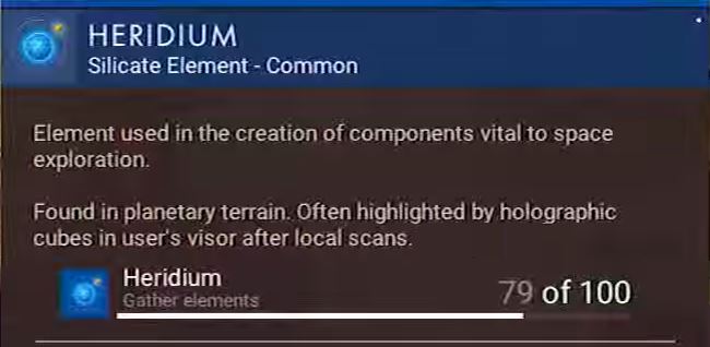 Questo elemento è trovato nel terreno dei pianeti e nelle caverne. Delle volte è evidenziato da cubi olografici nel visore del giocatore dopo la scansione locale.