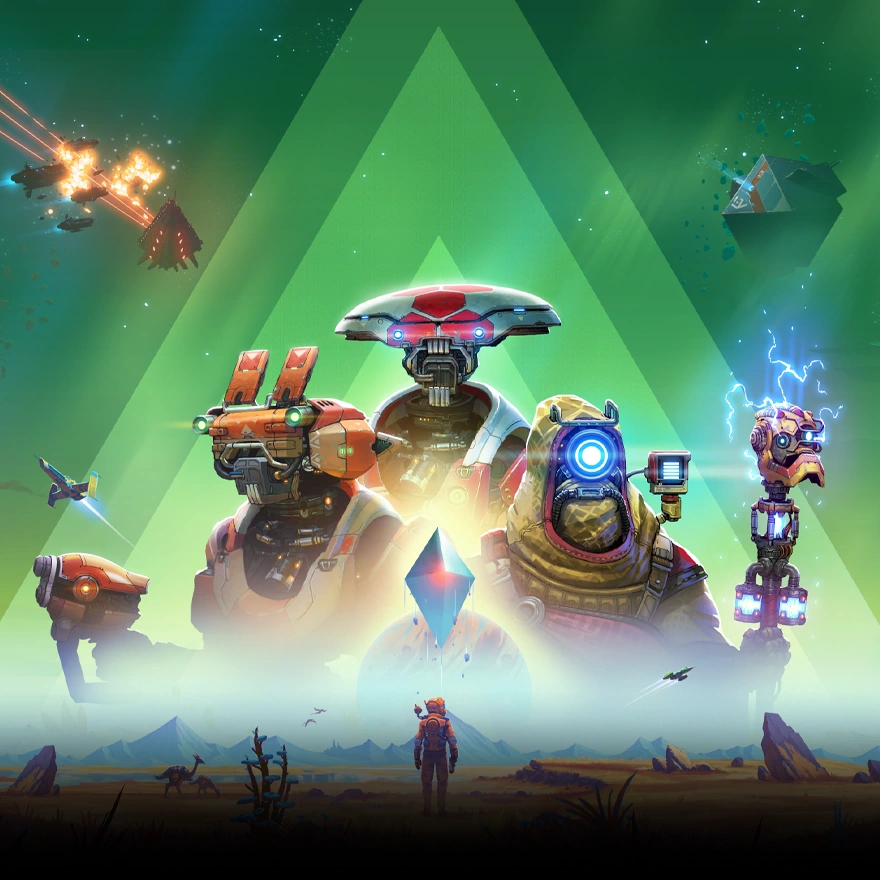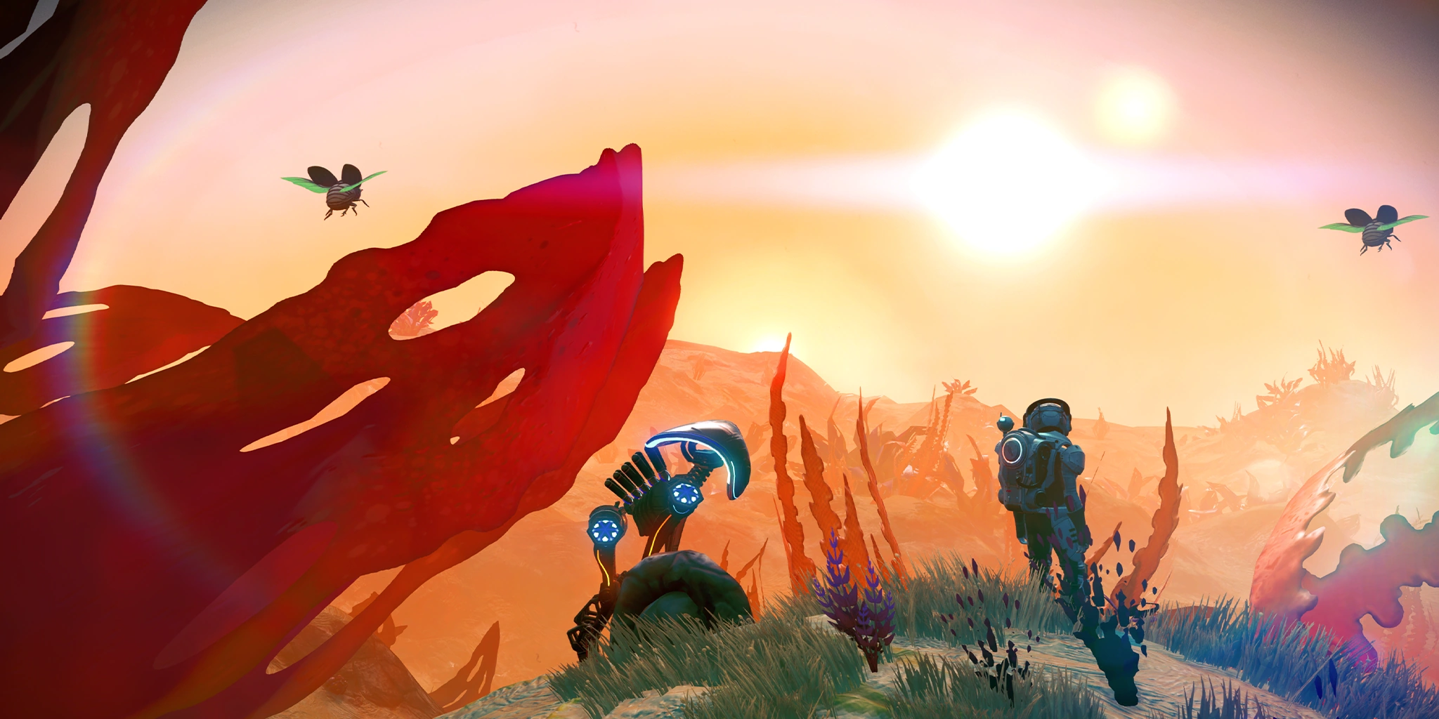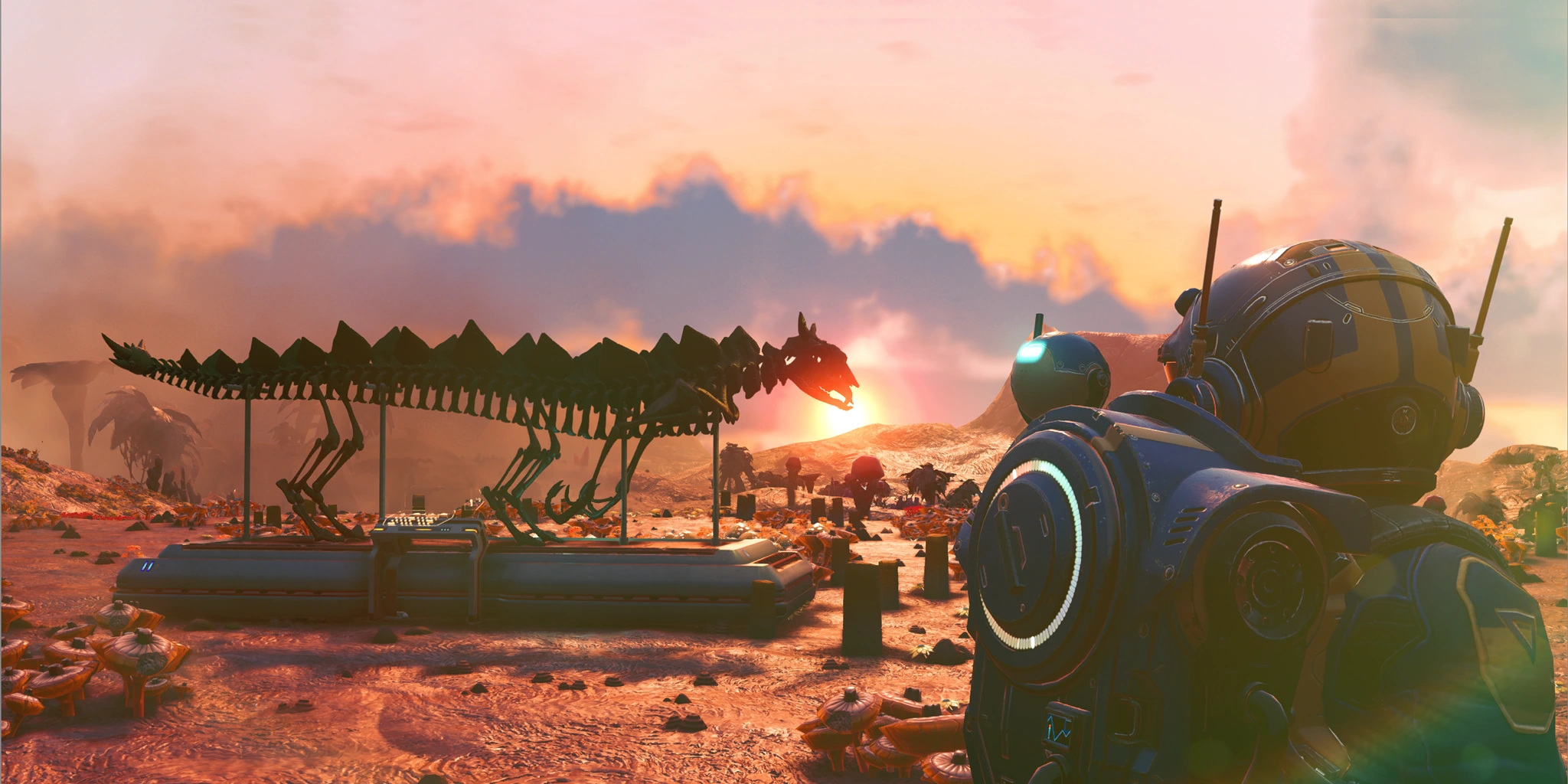 - プロシージャル生成されている静的な舞台そのものは同一。どのモードでも同じ位置に同じ星系があり、同じ惑星に行けば同じ風景があって、同じ土地には同じ建造物や宇宙船がある。