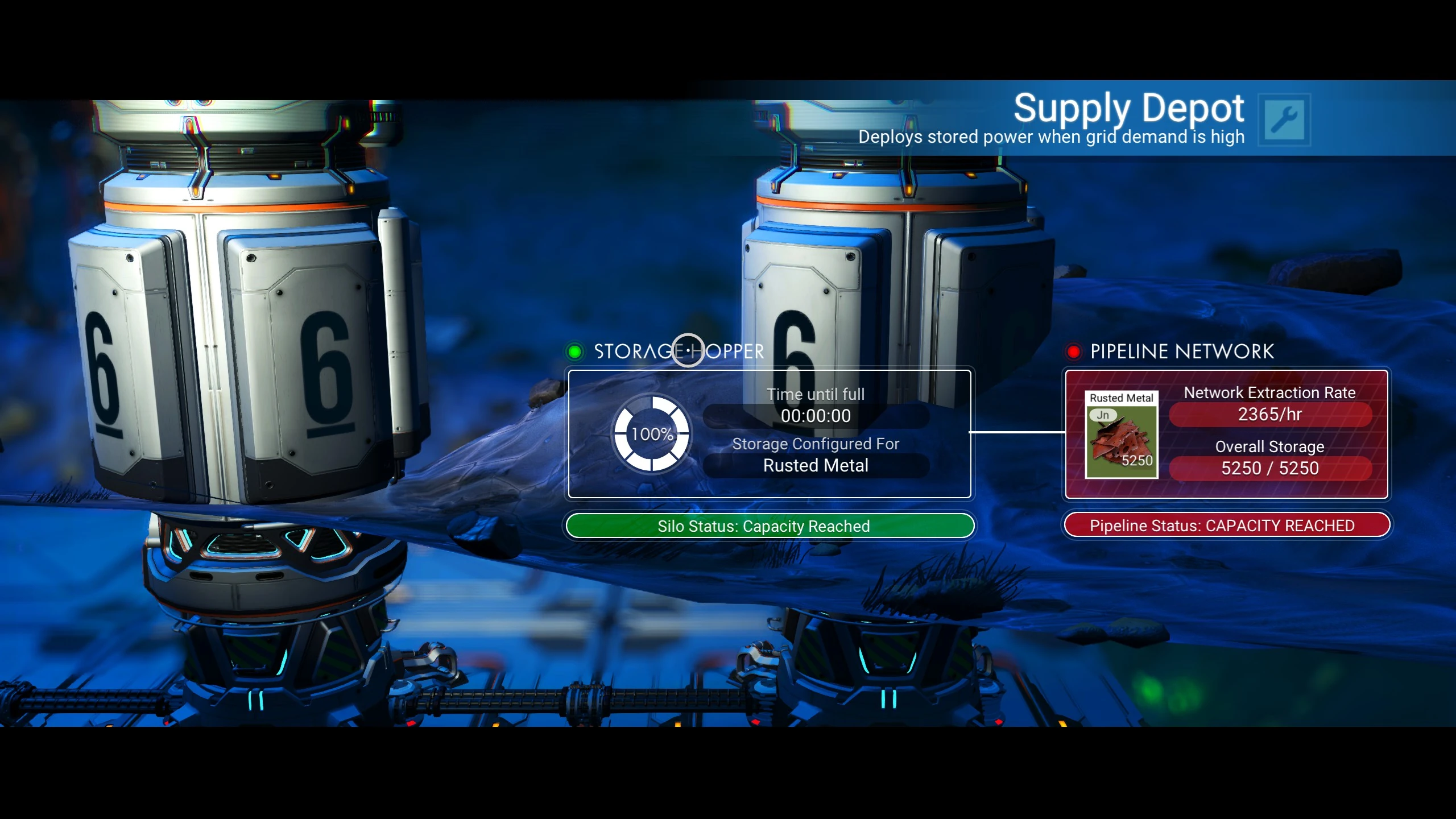 - Mineral Extractor and attached Supply Depot that can store up to 5250 Rusted Metal.