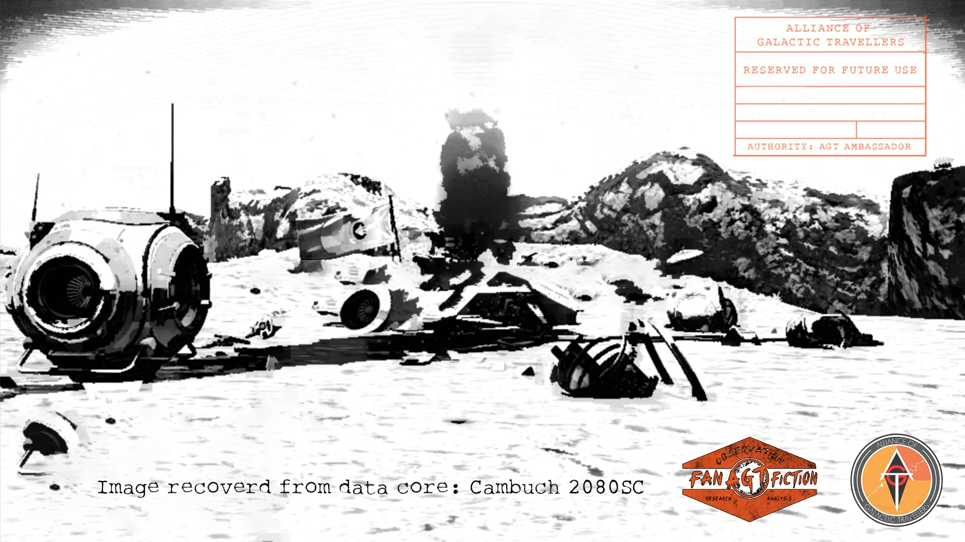 When an event of significance takes place in the Fan Fiction civilization of Alliance of Galactic Travellers the Galactic Archival Council commissions a real world graphic from the illustrations team. The graphic blends elements from NMS with the facts of the even and the DATA CORE is posted across the AGT social media network.