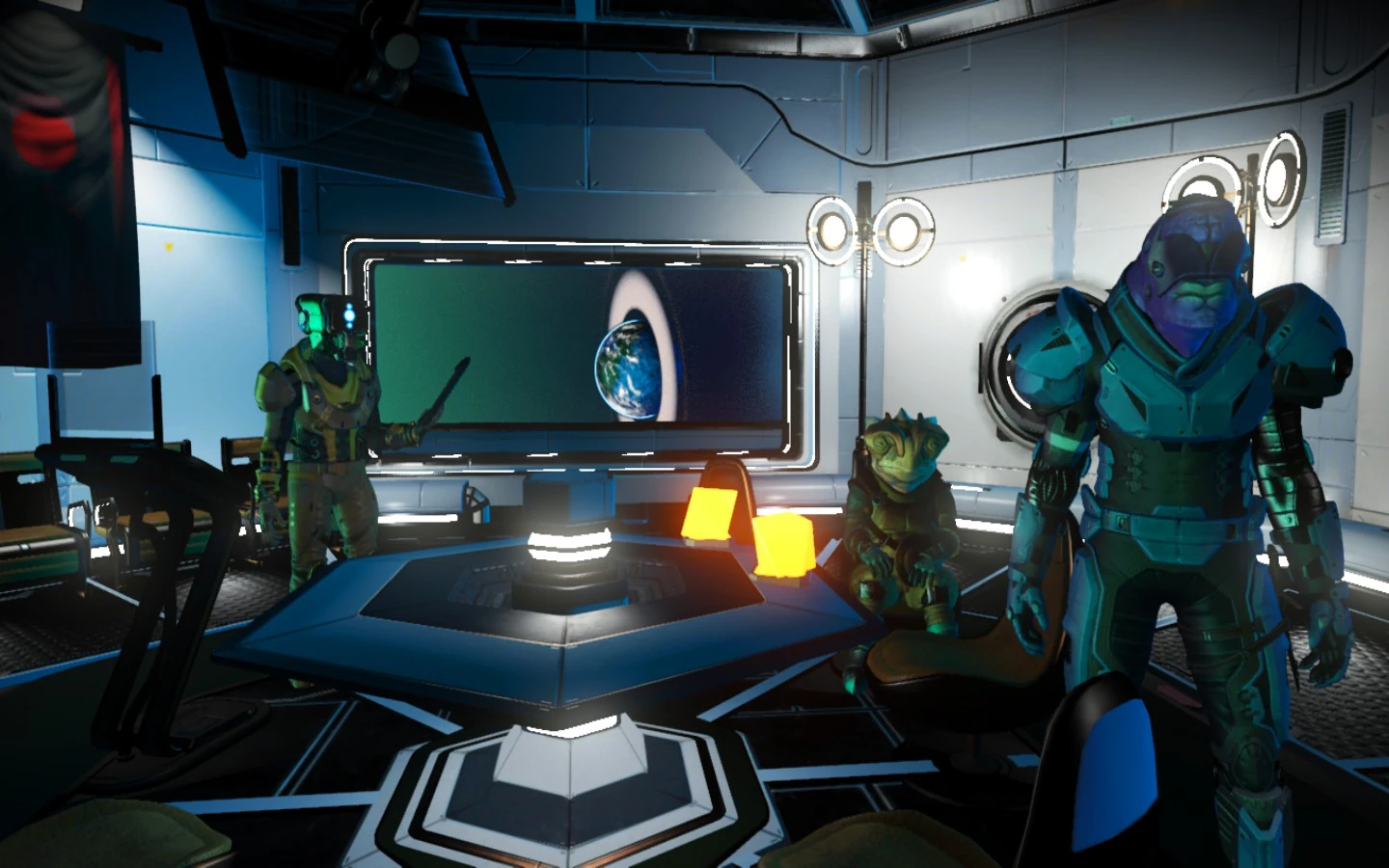 Aboard the space station the Korvax operate an advanced workshop which they are more than happy to share with travellers in need of repairs and aide.
