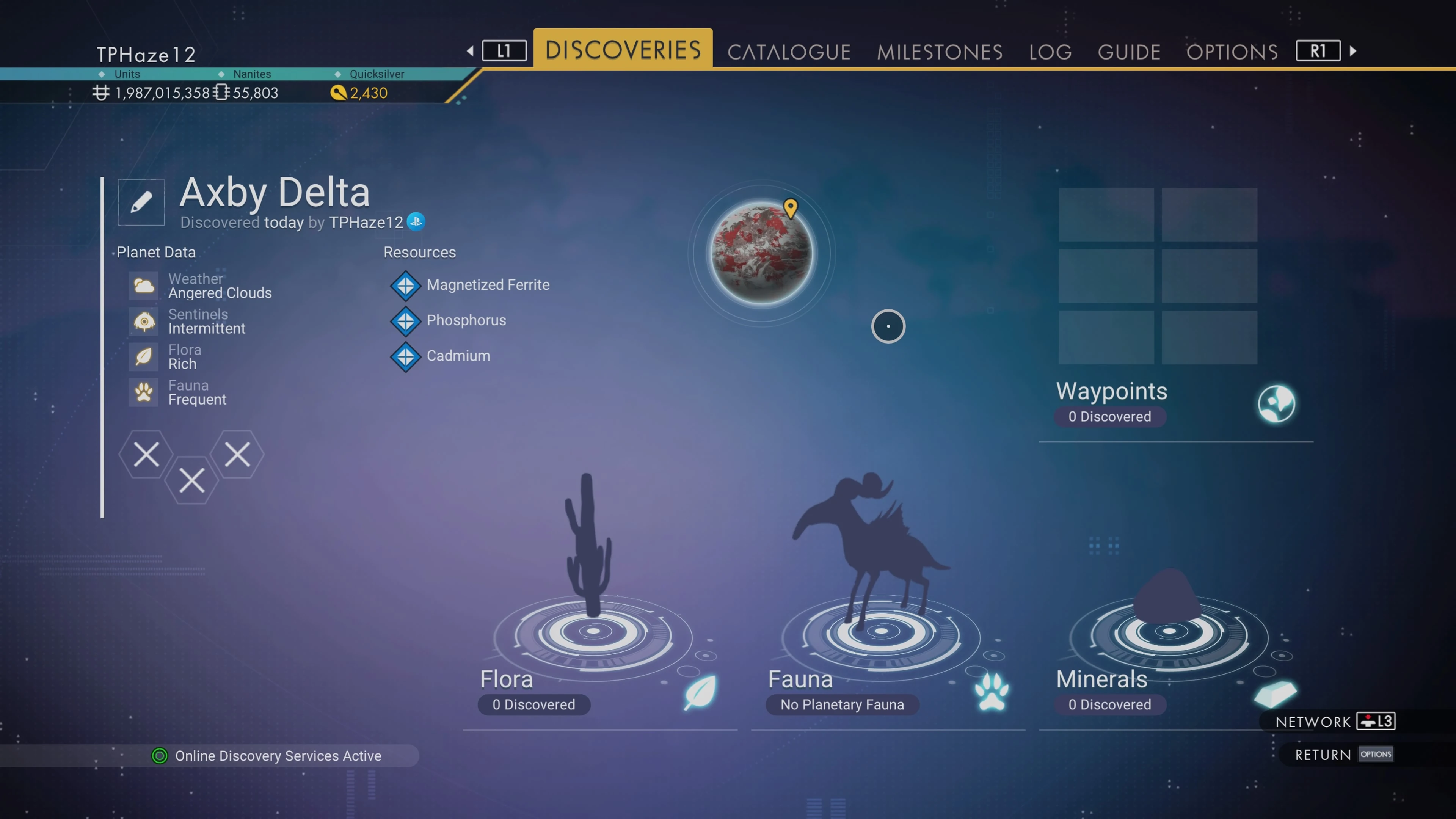 - Explored and documented by GHGS Researcher TPHaze on Nov 8, 2020. Who was shown to be the uploader on this date, due to the planet itself being bugged.