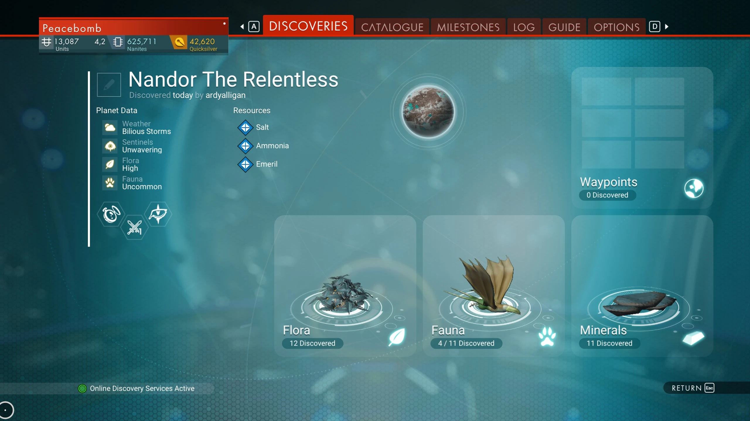 | 02 | -20.04 | -154.82 | Minor Settlement A | TBD | Y | Class A-10 slot Ohmic Spacetime Generator pistol Multi-tool |