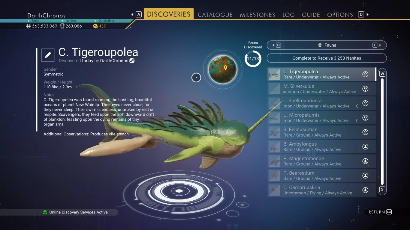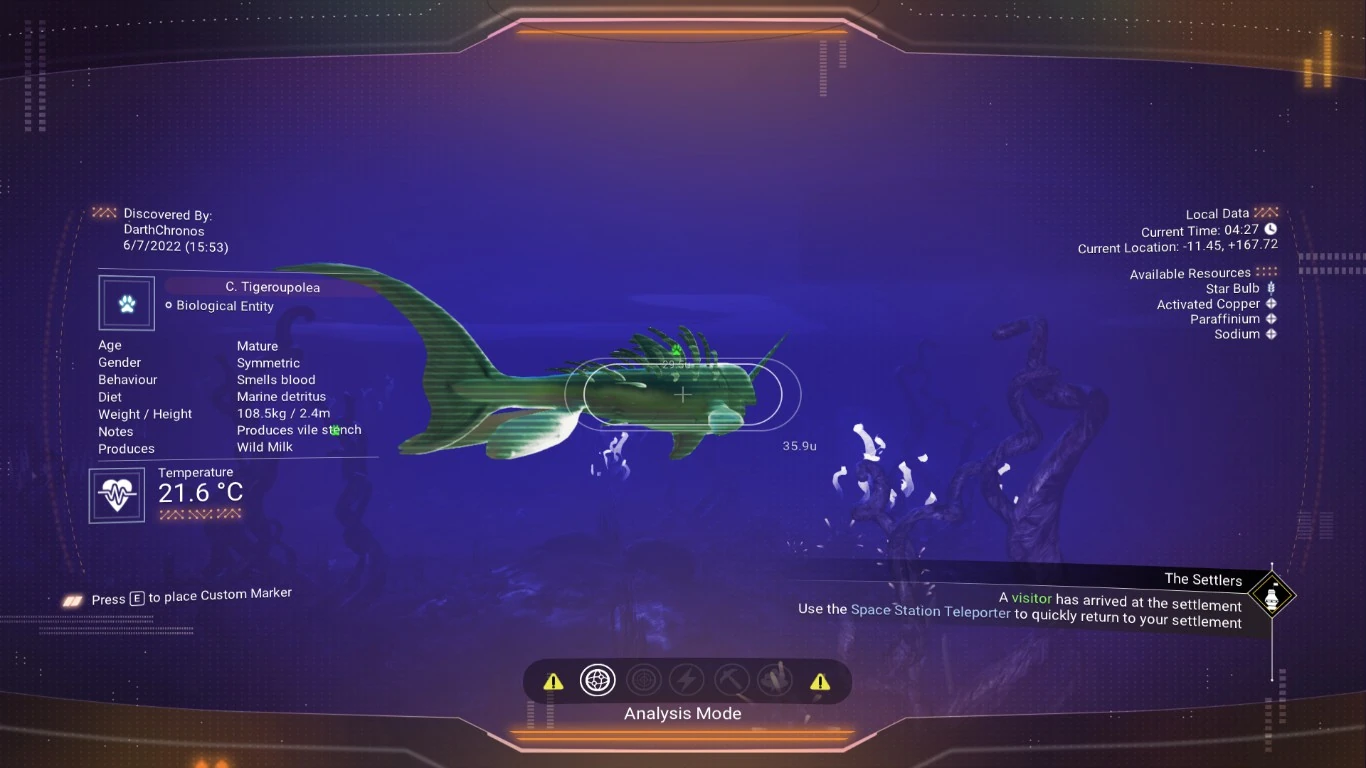 C. Tigeroupolea was found roaming the bustling, bountiful oceans of planet New Waintip. Their eyes never close, for they never sleep. Their swim is endless, unbroken by rest or respite. Scavengers, they feed upon the soft downward drift of plankton; feasting upon the dying remains of tiny organisms.