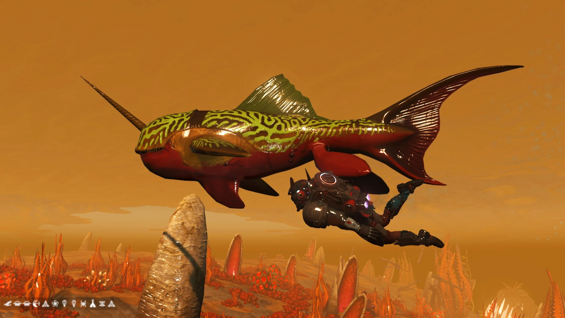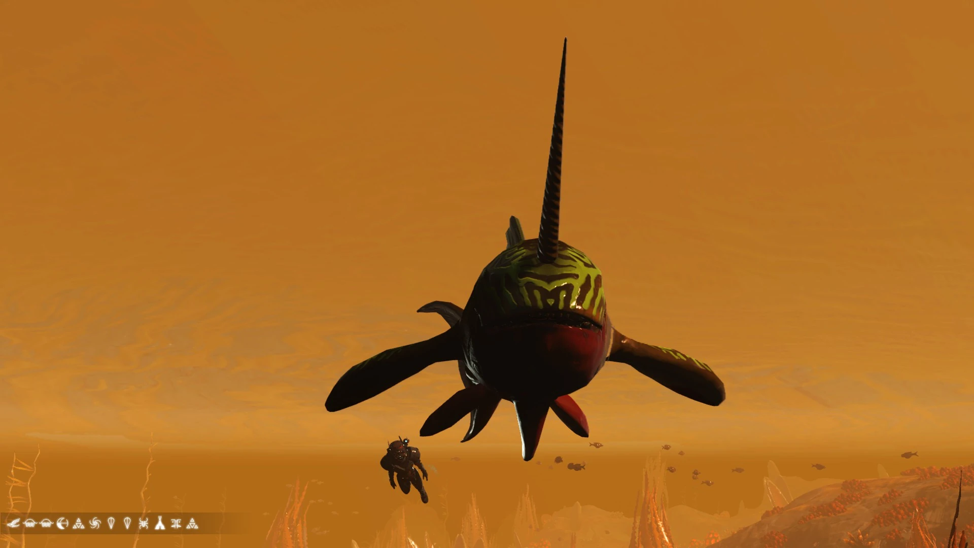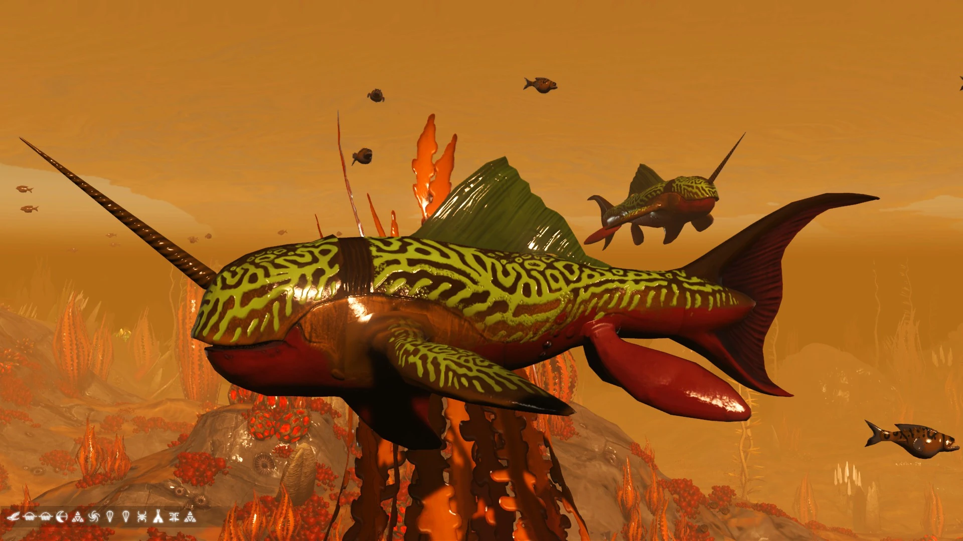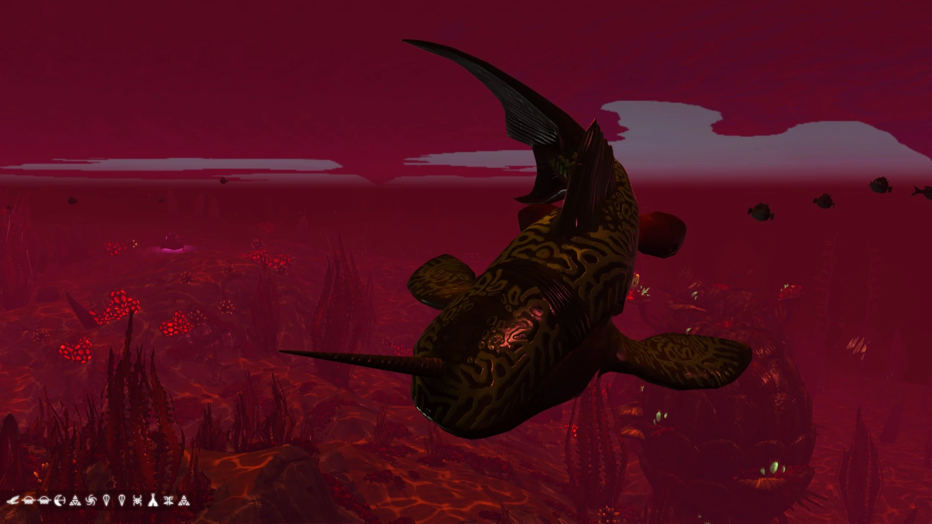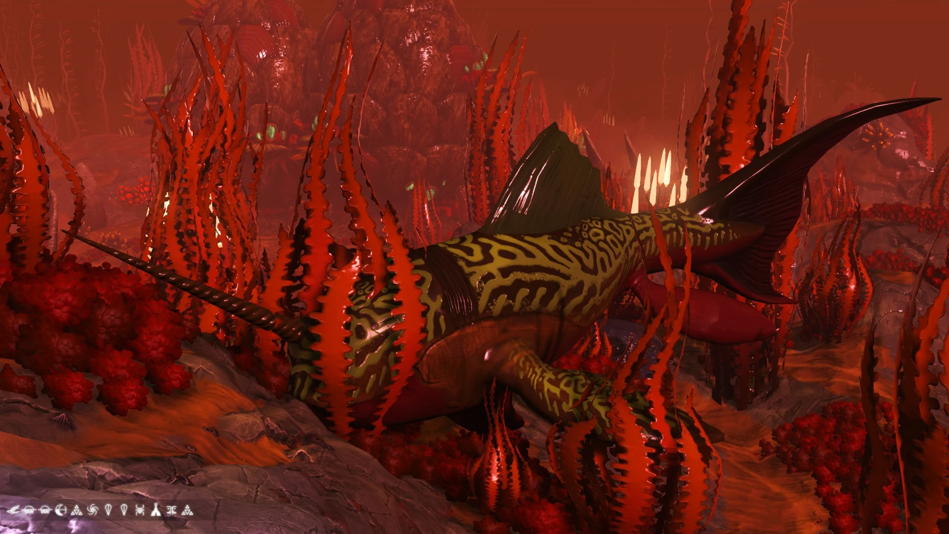 C. Trogtukera inhabits the weed-strewn waters of planet Ewbiggi Delta. Highly intelligent, these fish appear aware of the world beyond their waters. They seem haunted by this realisation, of a land of wonders they will never visit. Aggressive hunters, they make a meal of any fish unfortunate enough to get caught in their jaws.