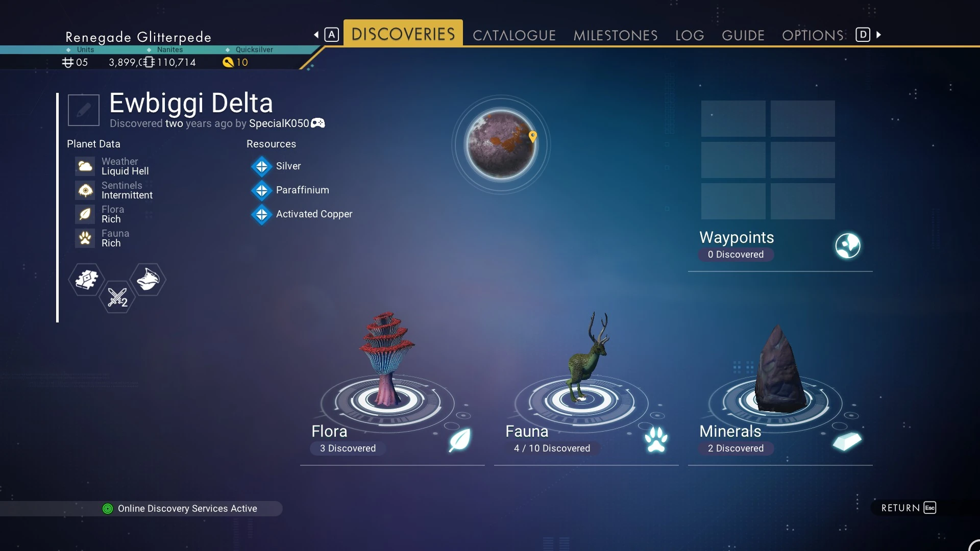 It can be found on the planet Ewbiggi Delta in the HUB7-4 Erebor star system.