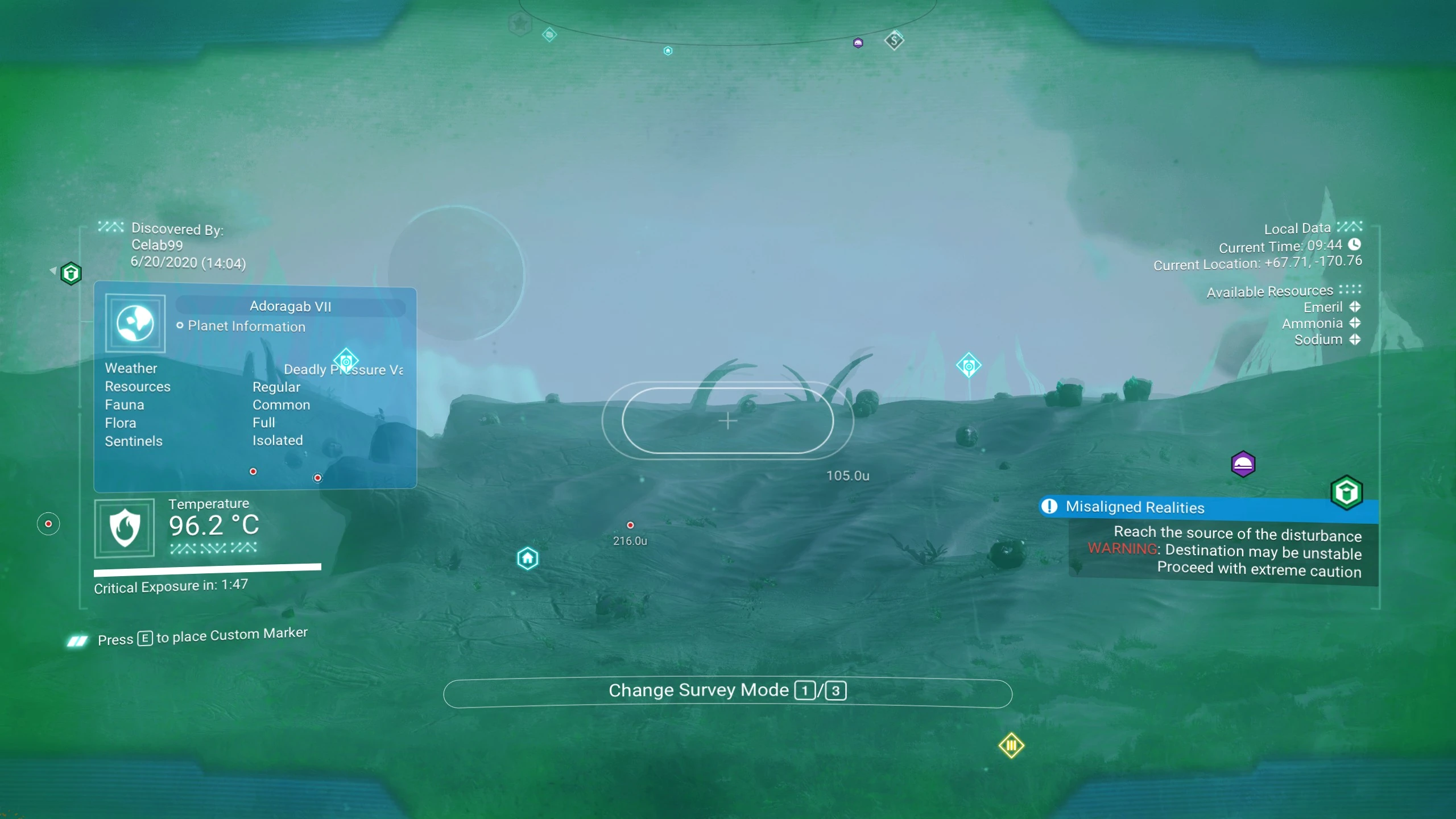 | 71.66 | -167.27 | Holographic Comms Tower | Kosvill Encampment | Site of Weekend mission disturbance anomaly | 20-Jun-2020 | celab99 |