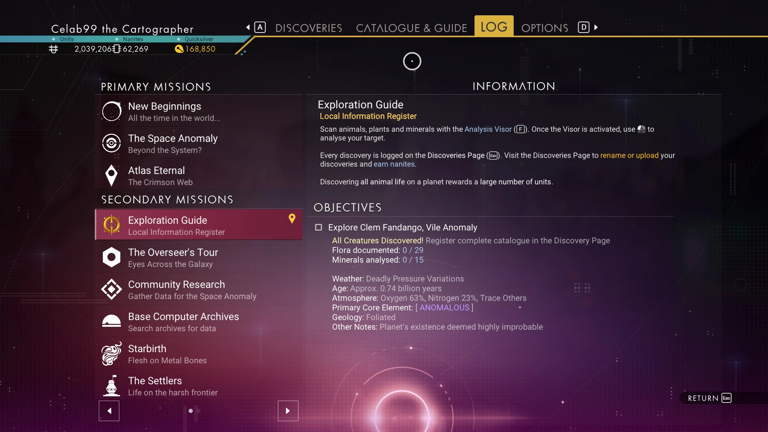 The terrain is mainly flat plains. It features Continental land masses. This world features large land masses separated by oceans and seas. Features include Hills as Terrain Archetypes. It is estimated to be approximately 0.74 billion years old. World geology appears to be Foliated. The primary core element is ANOMALOUS.