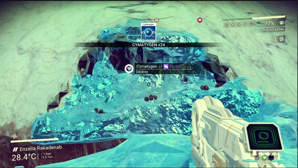 As described in the Summary, this element can be found on planets located in Blue Star systems. Cymatygen is usually found in large deposits reaching deep into the ground. Found in O class systems.