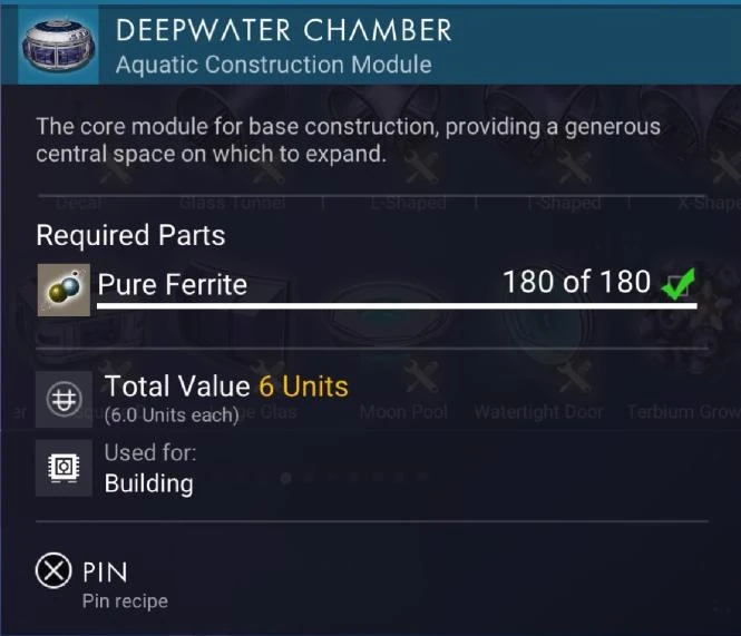 Deepwater Chamber can be built using a blueprint and the following ingredients: