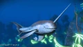 E. Salysticima is an elusive narwhal, a medium-sized whale that has a long sharp tusk growing out from its mouth. This particular species is moslty grey.
