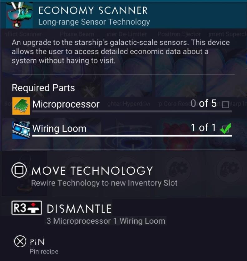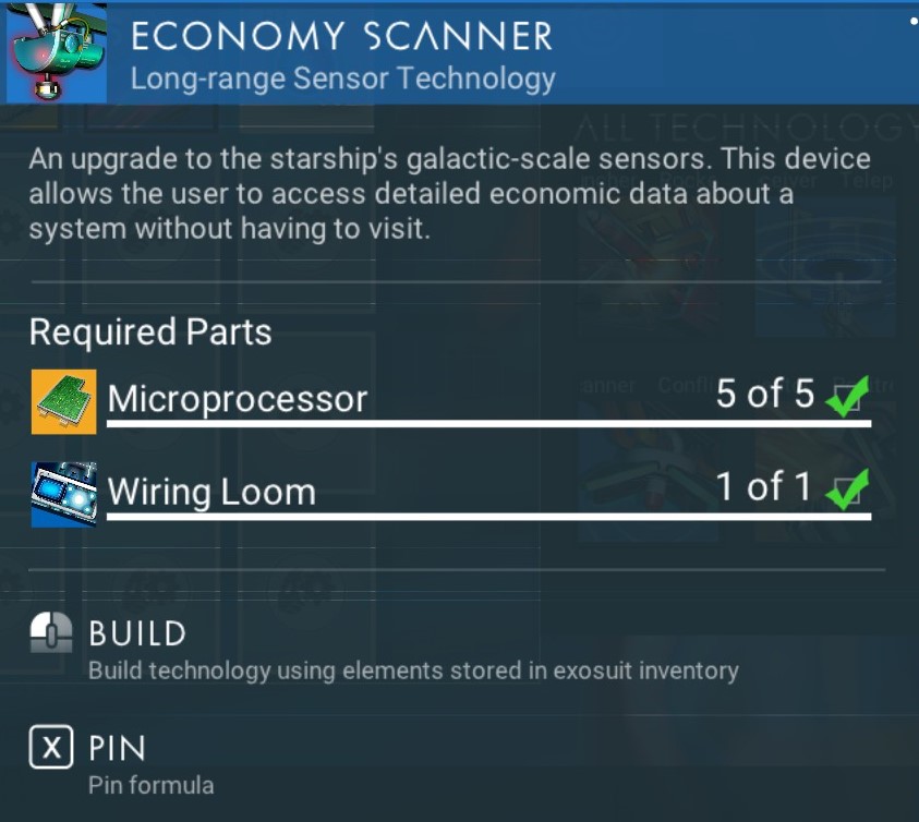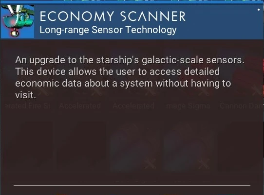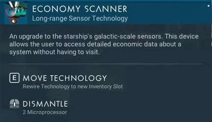 Economy Scanner is a starship technology and allows the player to check a star system's economy in the Galactic Map without having to warp to that system.