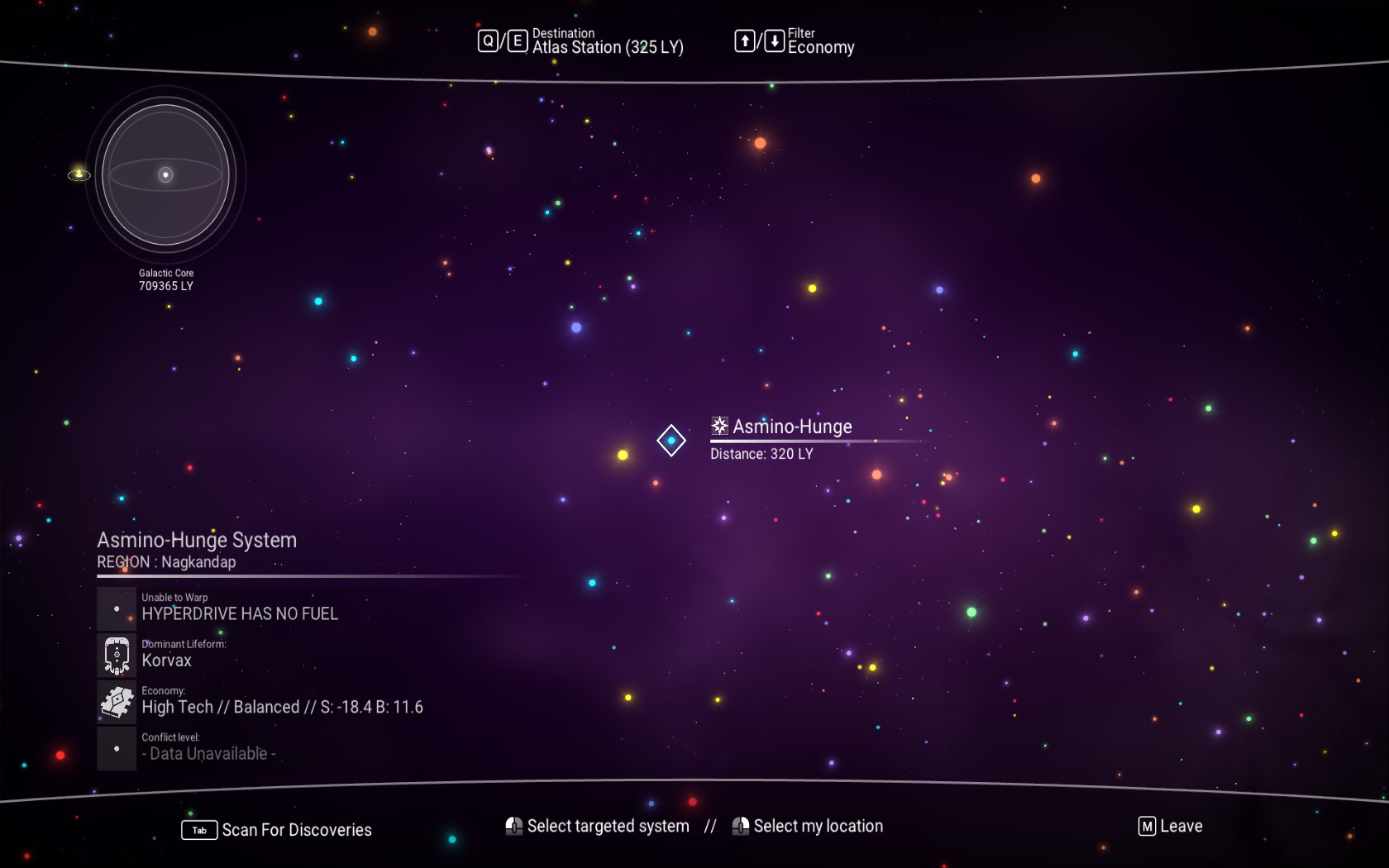 To note on PC use the R key to see more information about systems in the galactic map menu.