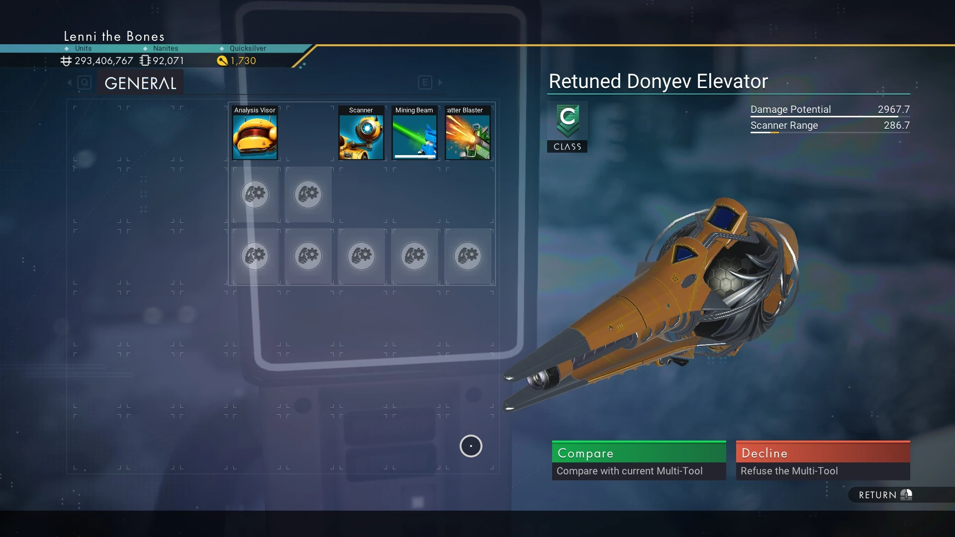 EisHub Multi-Tool Catalog - Royal contains a list of Royal multi-tools available in the Galactic Hub Eissentam, cataloged by the Galactic Hub Ship Hunters (GHSH). For other Hub multi-tool types, see the EisHub Multi-Tool Catalog.
