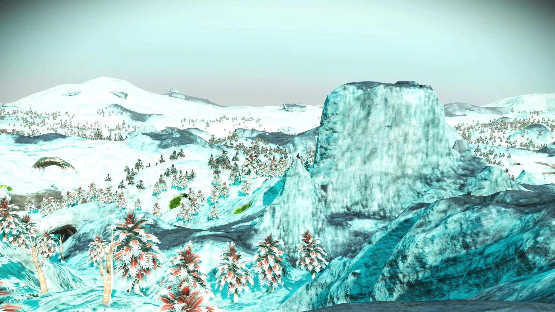 Ellayangir has many traits that make it interesting for travellers. From orbit the planet appears white as per many other planets with cold biomes. On the surface, Ellayangir's hilly tundra is covered with large forests and the occasional pond or sandy clearing. Albumen Pearls can be found naturally across the surface of the planet, usually within the many cave systems that weave their way under the surface.