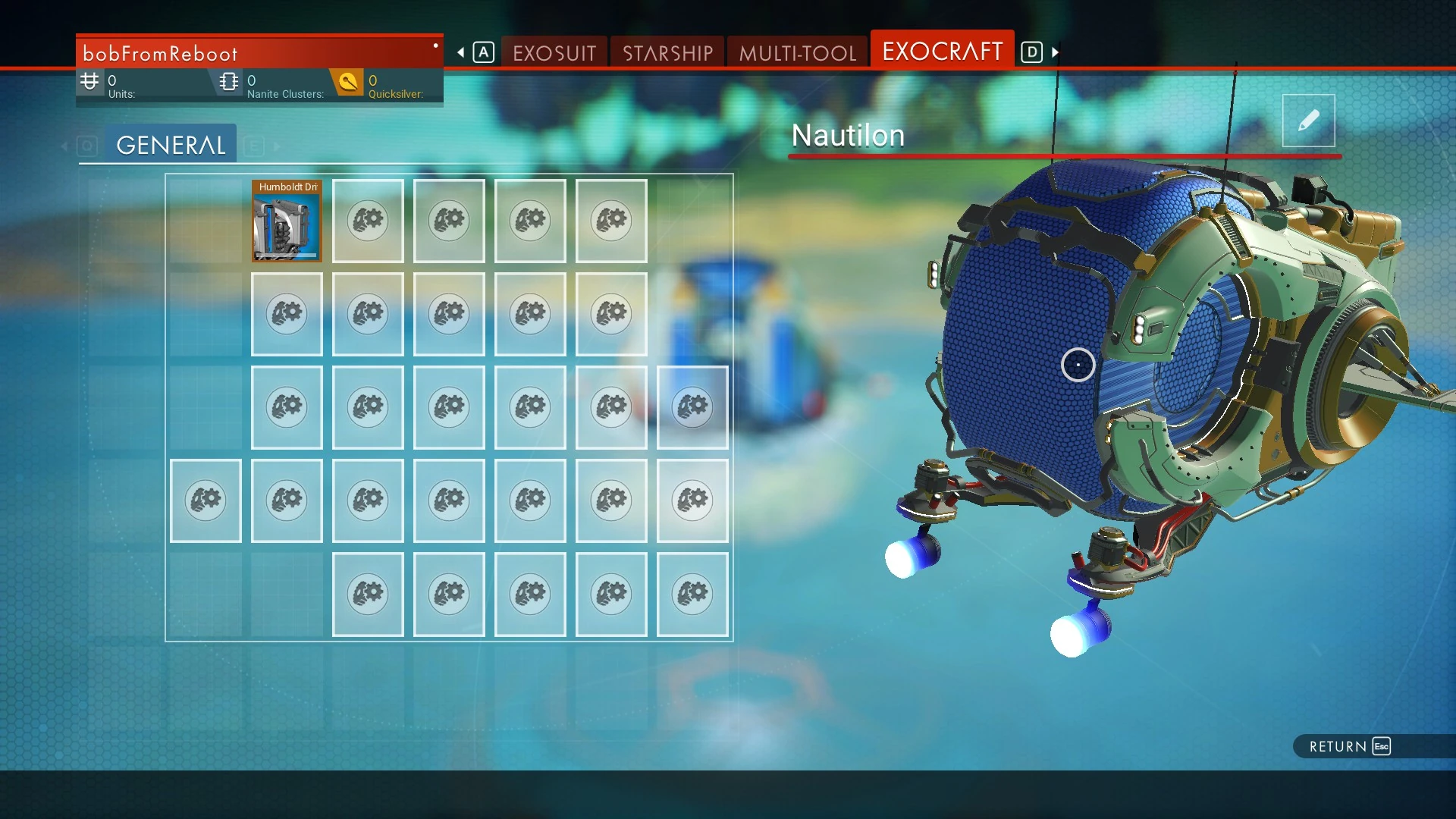 - There exists an unreleased Exocraft called the Dragonfly, which was a hovercraft with 16 slots with a similar appearance to the Nautilon. As of now, the only way to retrieve this vehicle is to copy and paste the locations of one of the other Exocraft that are visible in the save editor.
