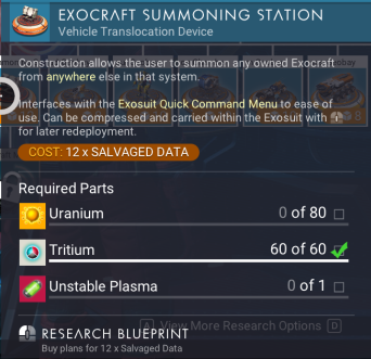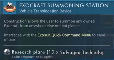 Construction allows the user to summon any owned Exocraft from anywhere else in that system.
