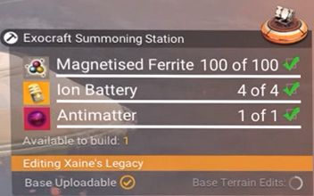 Exocraft Summoning Station is a base building product.