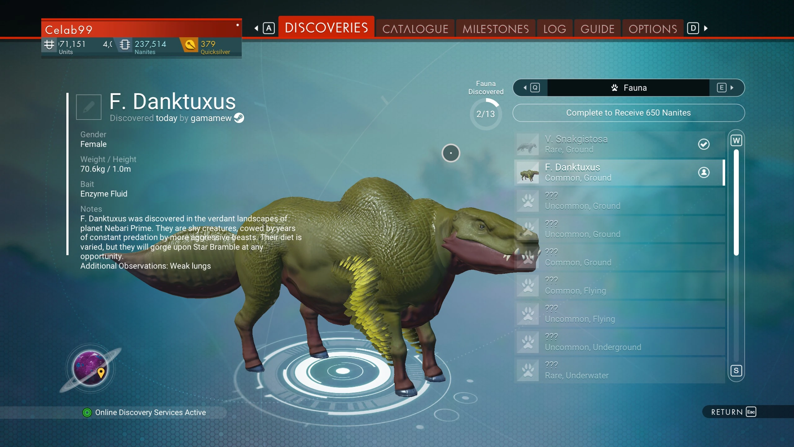 - On PC Normal, it was discovered by gamamew and is archived in the CELAB Foreign Fauna Discoveries. It was discovered on 4-Jul-2020.