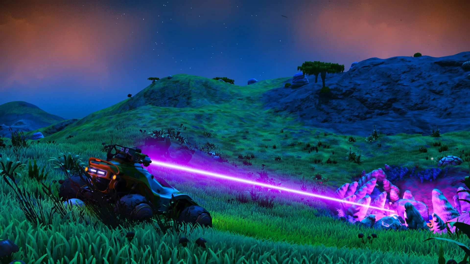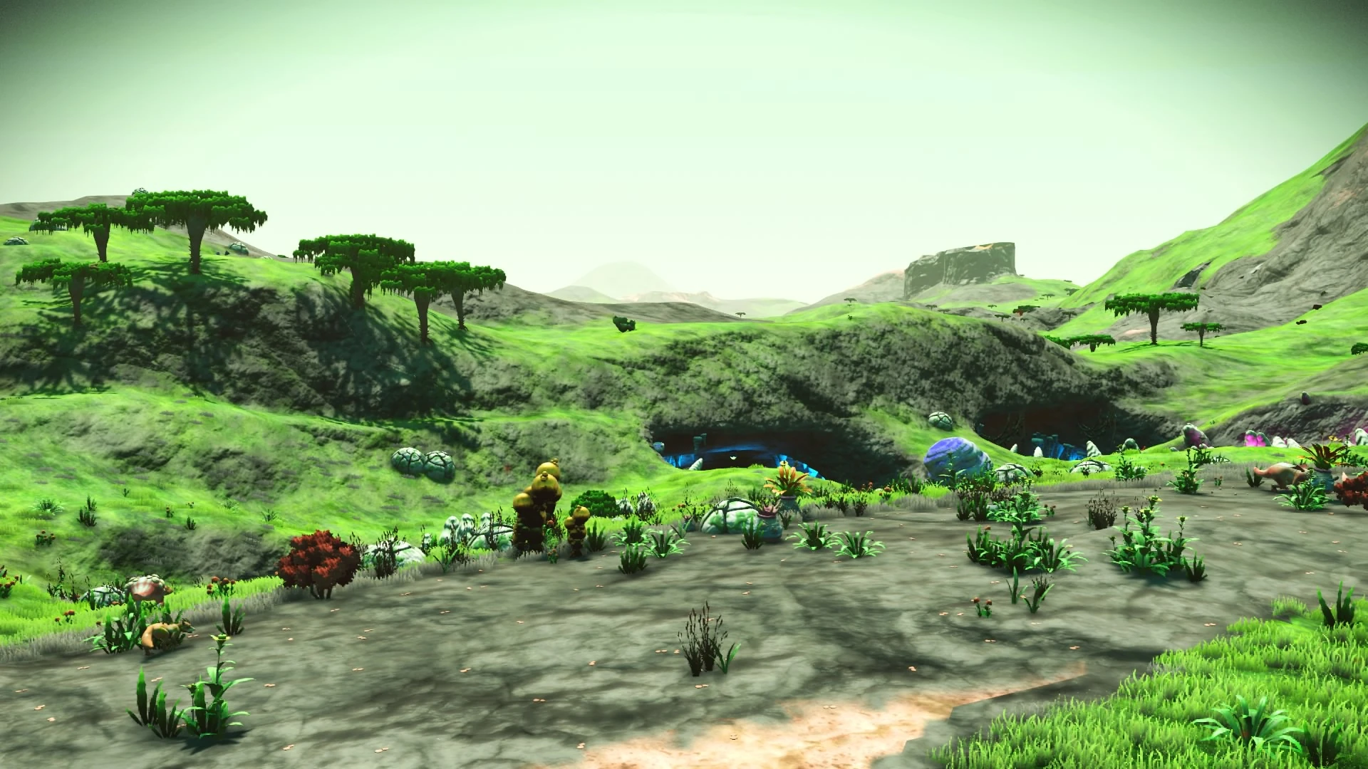 Exocraft driving is fun across the rolling hills