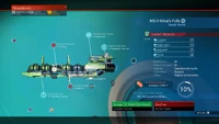 To repair the frigate, the owner needs to fly over in their spaceship and land on one of the frigate's landing pads, at which point the frigate's captain contacts the player and marks the Damaged Components. Alternatively, Frigate Teleporter can be used from the "Manage Fleet" console while viewing the frigate in question. Follow the red marks to find the damaged components, which can be inside or outside the frigate, on various ramps, but will always be accessible by foot. Some may be accessed through doors or up ladders. When you reach the damaged component, a repair interface will appear. The required materials for the repairs should be stored in the player's freighter, starship or exosuit inventory to be usable during the repair process.