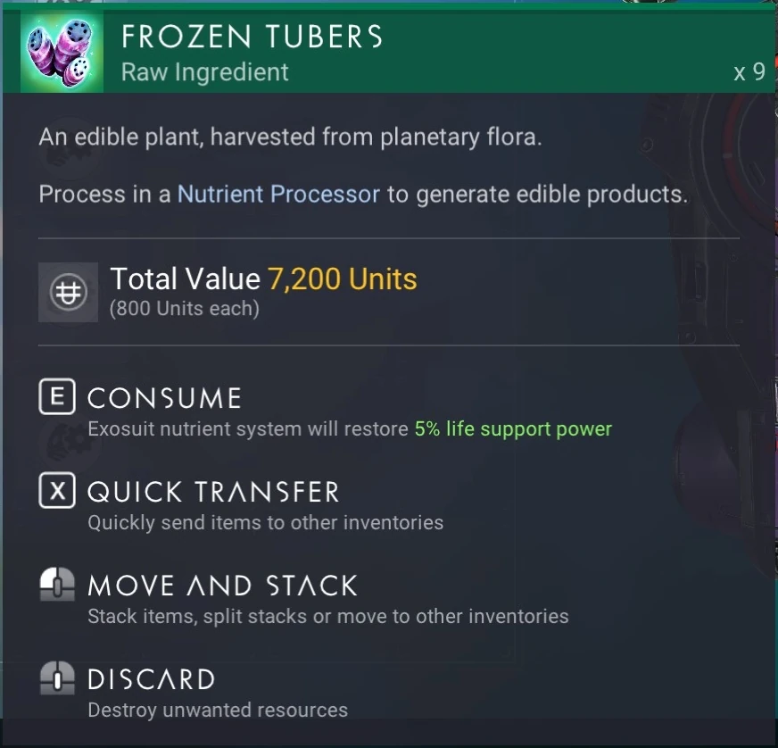 Frozen Tubers is a consumable and one of the Raw Ingredients.