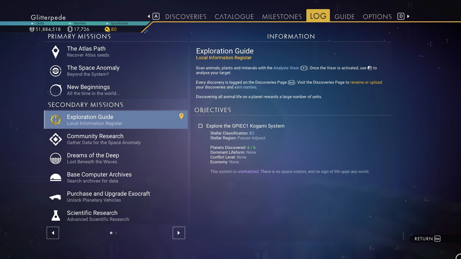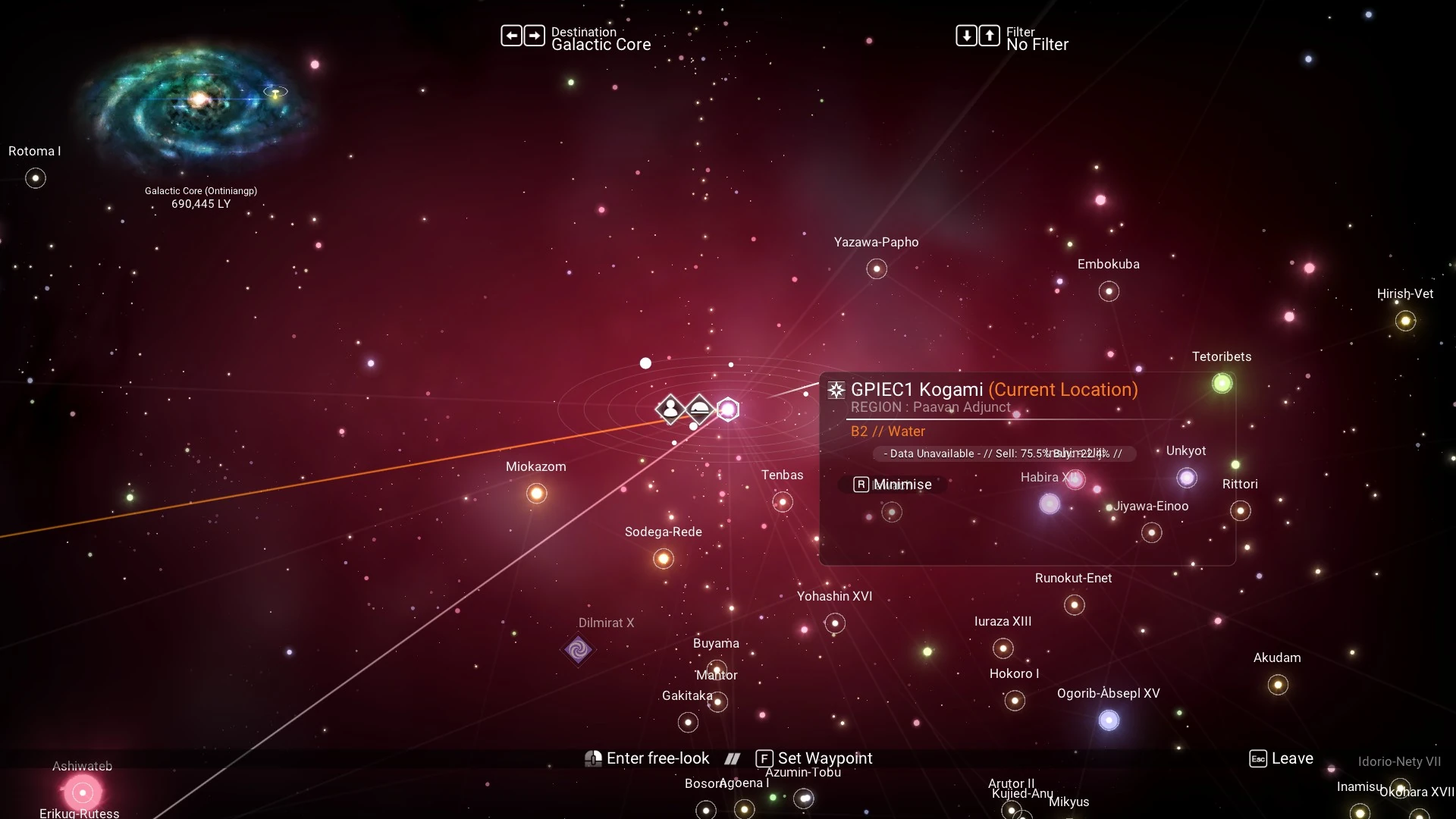 GPIEC1 Kogami is a star system in the No Man's Sky universe, located in the Paavan Adjunct region of the Ontiniangp galaxy. It is uncharted, lacking the presence of any interstellar faction.
