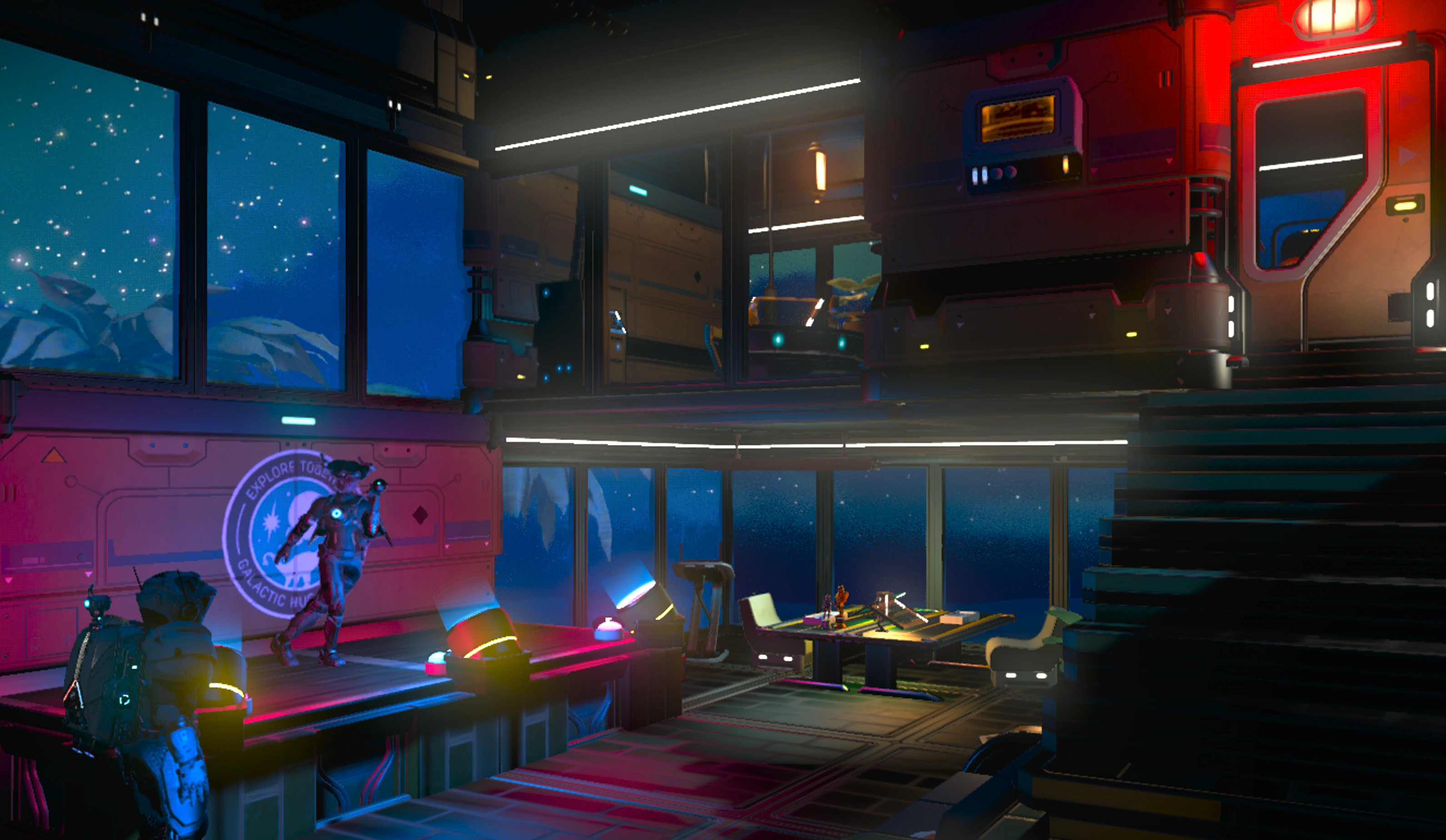 The Broadcasting Tower houses a stationary office suitable for recording episodes of HUHU 042.2 FM: A weekly radio broadcast consisting of music, news and advertisements from all throughout civilized space.