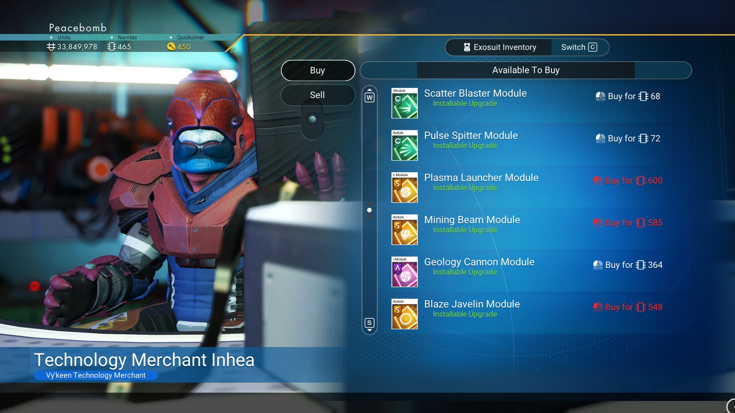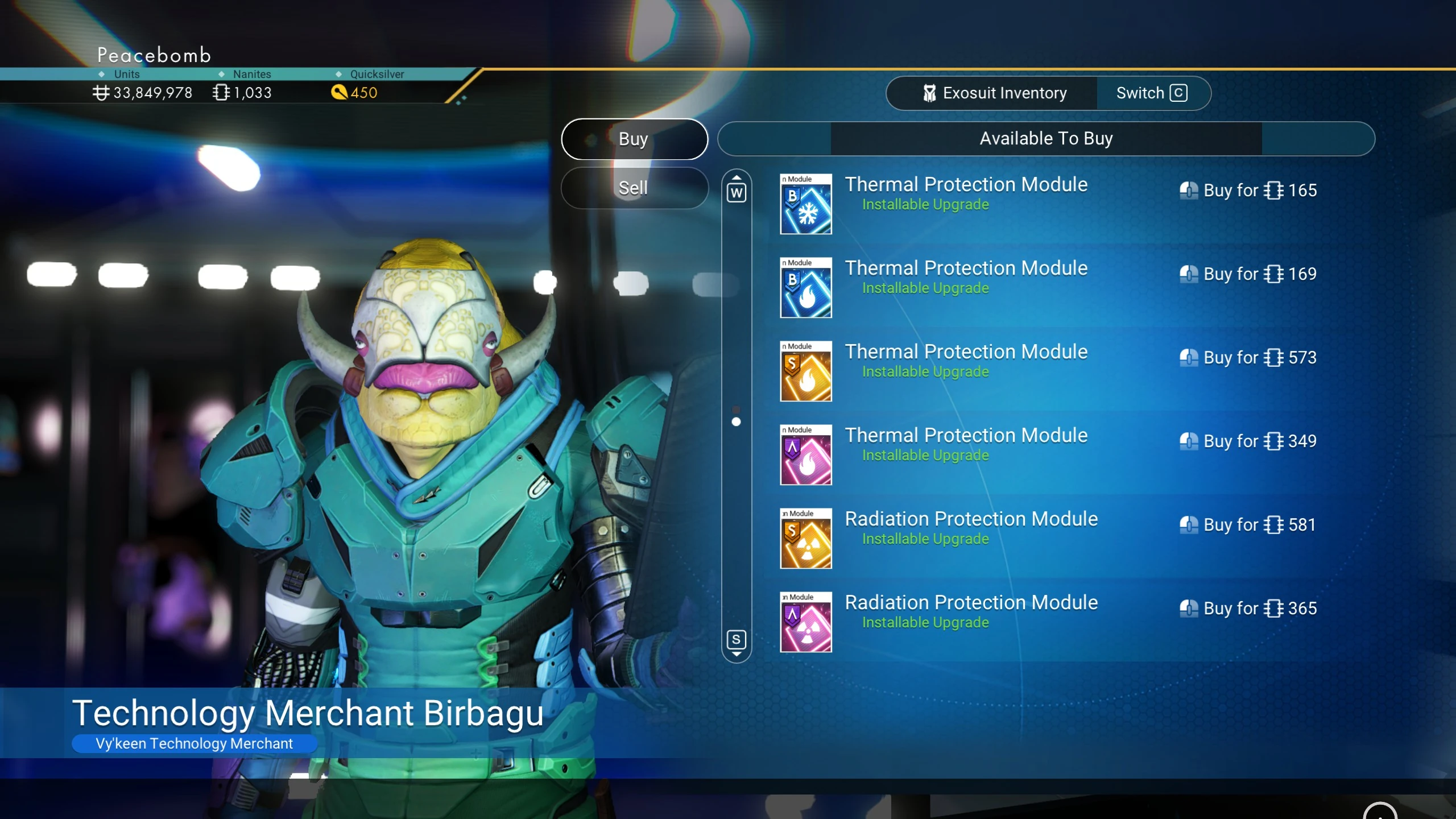 The space station merchants include those for Multi-tool/Starship/Exosuit Tech, as well as the Vehicle Shop. They offer the following items for sale: