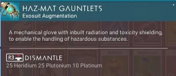 Haz-Mat Gauntlet can be dismantled after construction, returning the following ingredients: