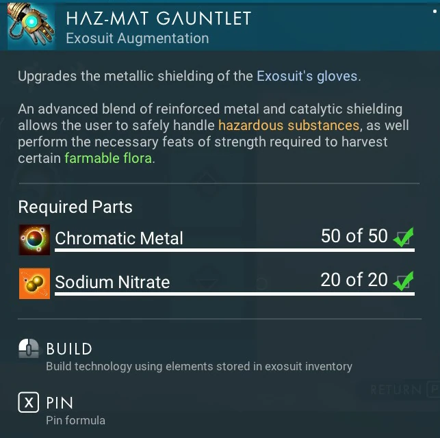 Haz-Mat Gauntlet technology allows a player to handle or harvest hazardous plants and other materials..