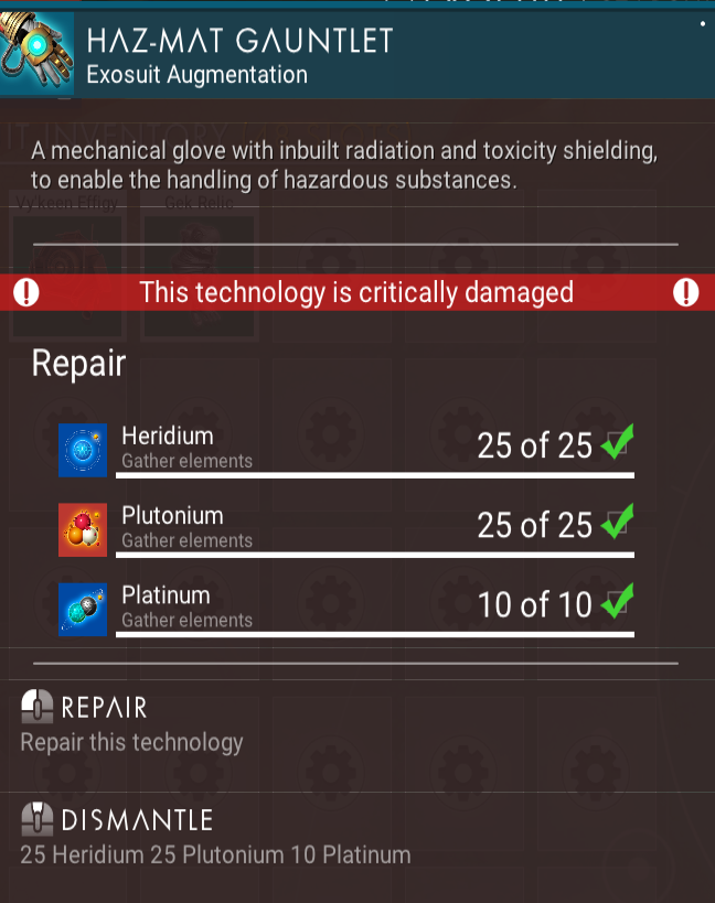 Haz-Mat Gauntlet can be repaired using the following ingredients: