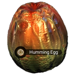 Humming Sac can be found in caves, it has the appearance of an egg and it contains an Albumen Pearl. It is unknown if the sac is of plant, animal, or mineral origin.