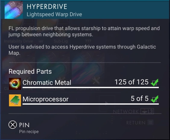 - Hyperdrive is one of the only technologies that can be crafted but not dismantled.