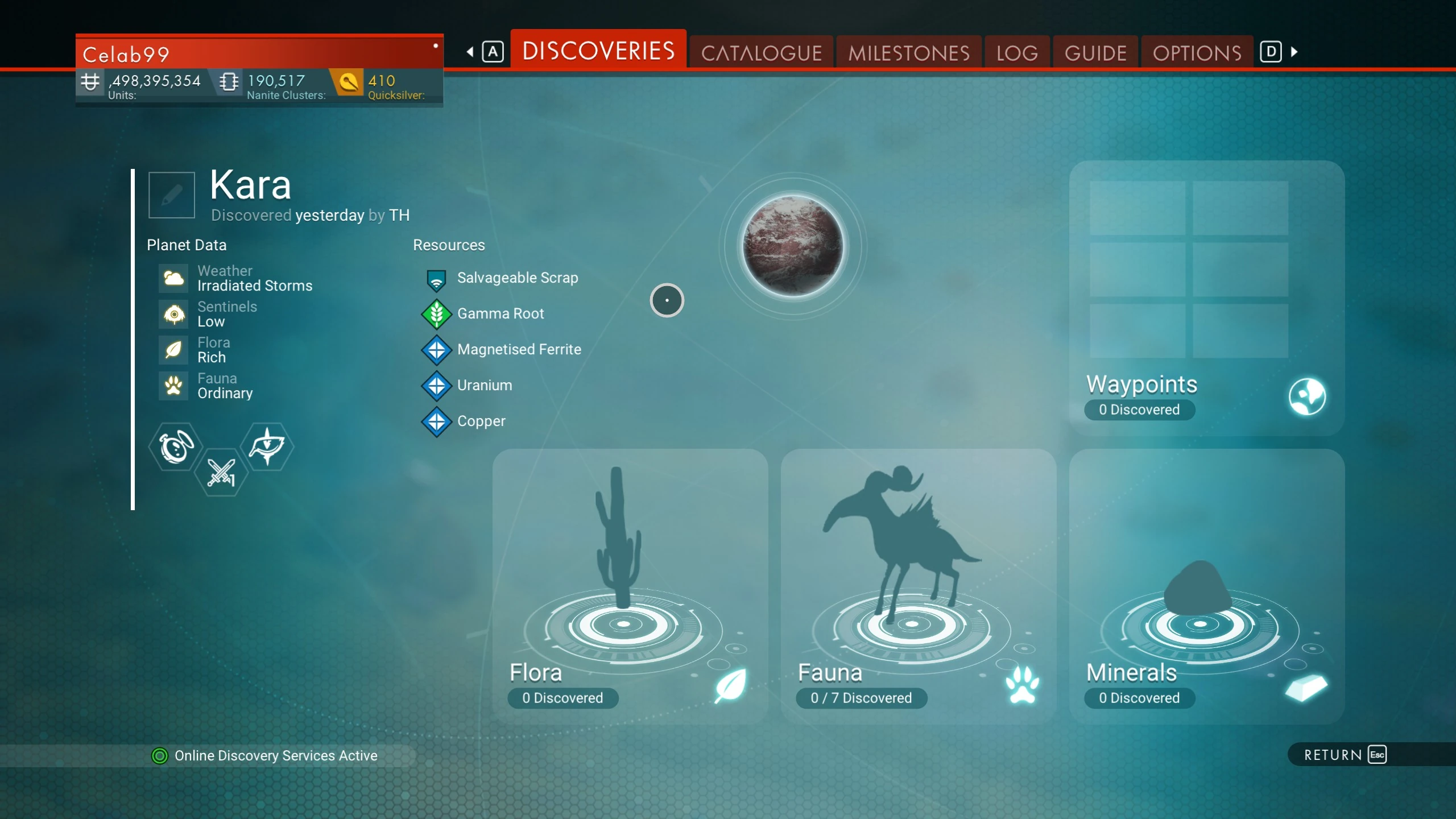 Kara is a planet in the star system Viky system. xD(WM23 System) on the PC version of the No Man's Sky universe.