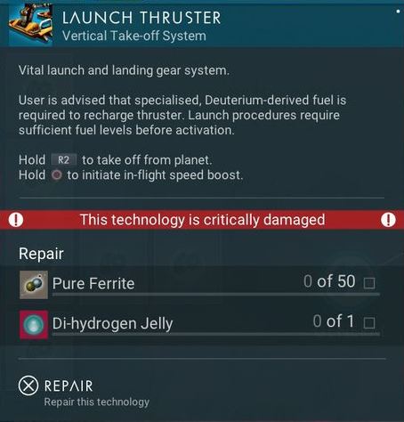 Launch Thruster is a starship technology that is required for the starship's landing and lift-off.