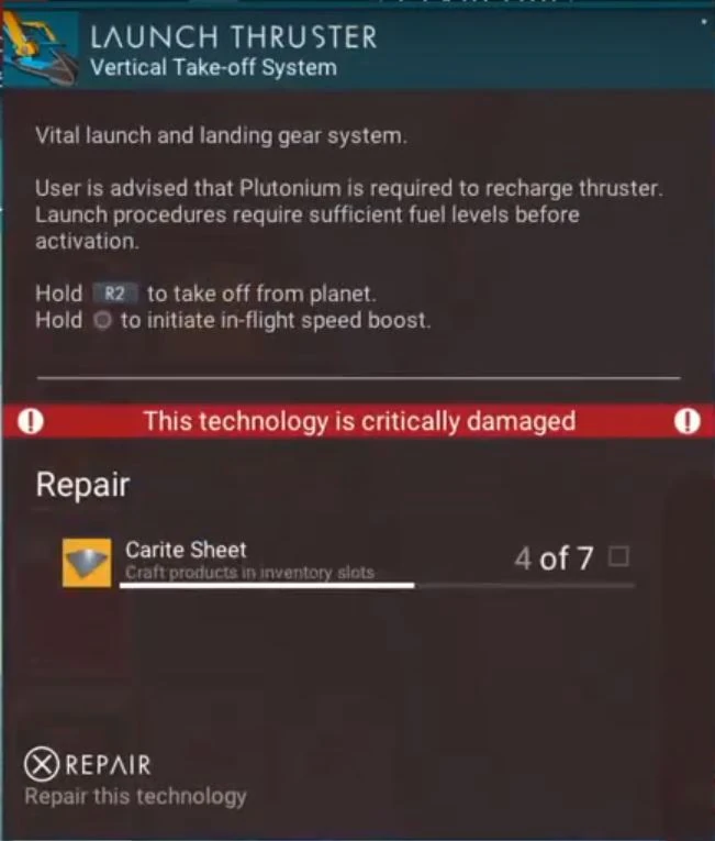 Launch Thruster can be repaired using the following ingredients: