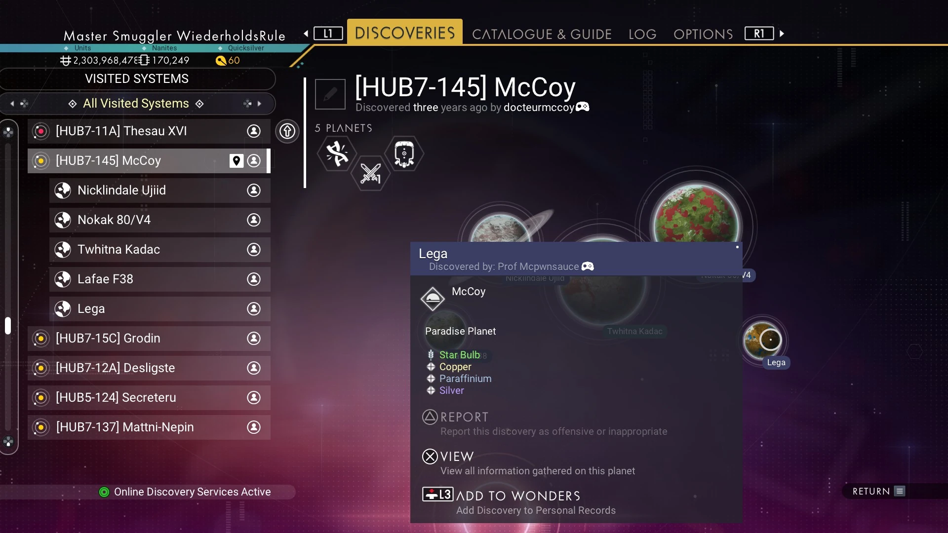 It can be found in the HUB7-145 McCoy star system in the Widraik region (HUB7) of the Galactic Hub.
