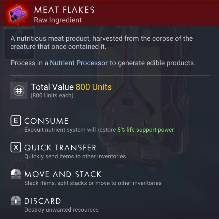 Meat Flakes x1 ("Extract Nutrients", 2.5 sec./unit output)