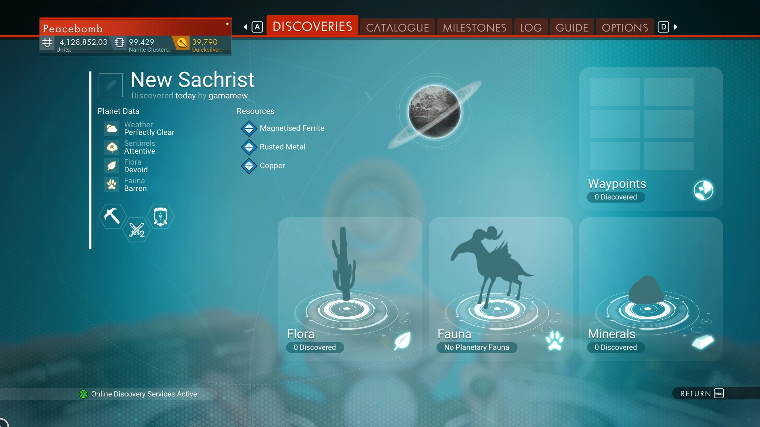 Notes: Host planet of the weekend mission of 06-Mar-2020. Many bases present. Ancient Bones present. | ||