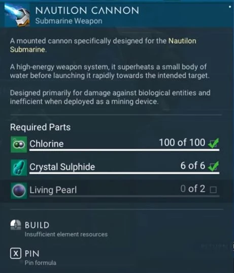 Nautilon Cannon can be built using a blueprint and the following ingredients: