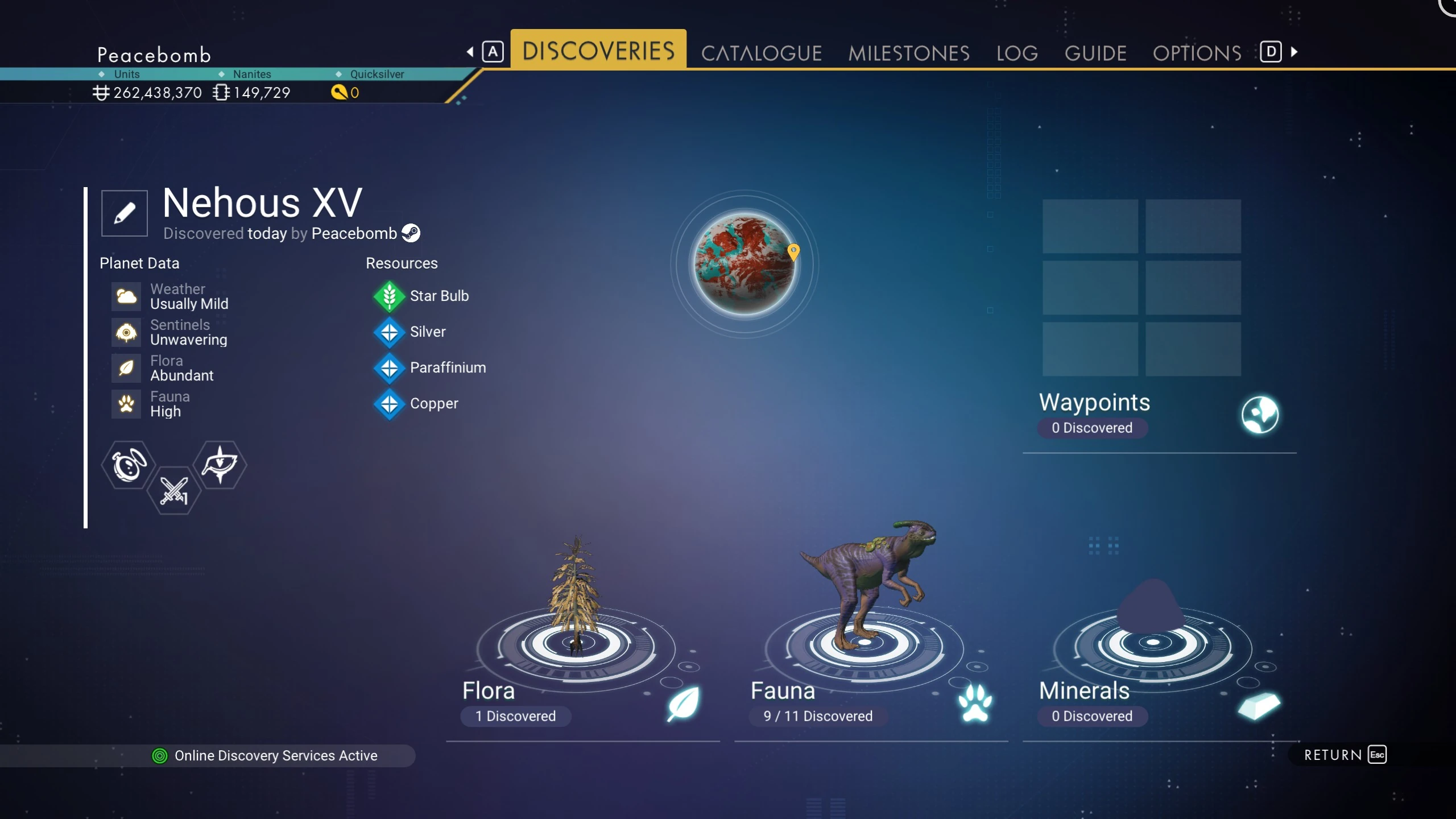 The following resources can be found on this planet: Star Bulb, Silver, Paraffinium, Copper.
