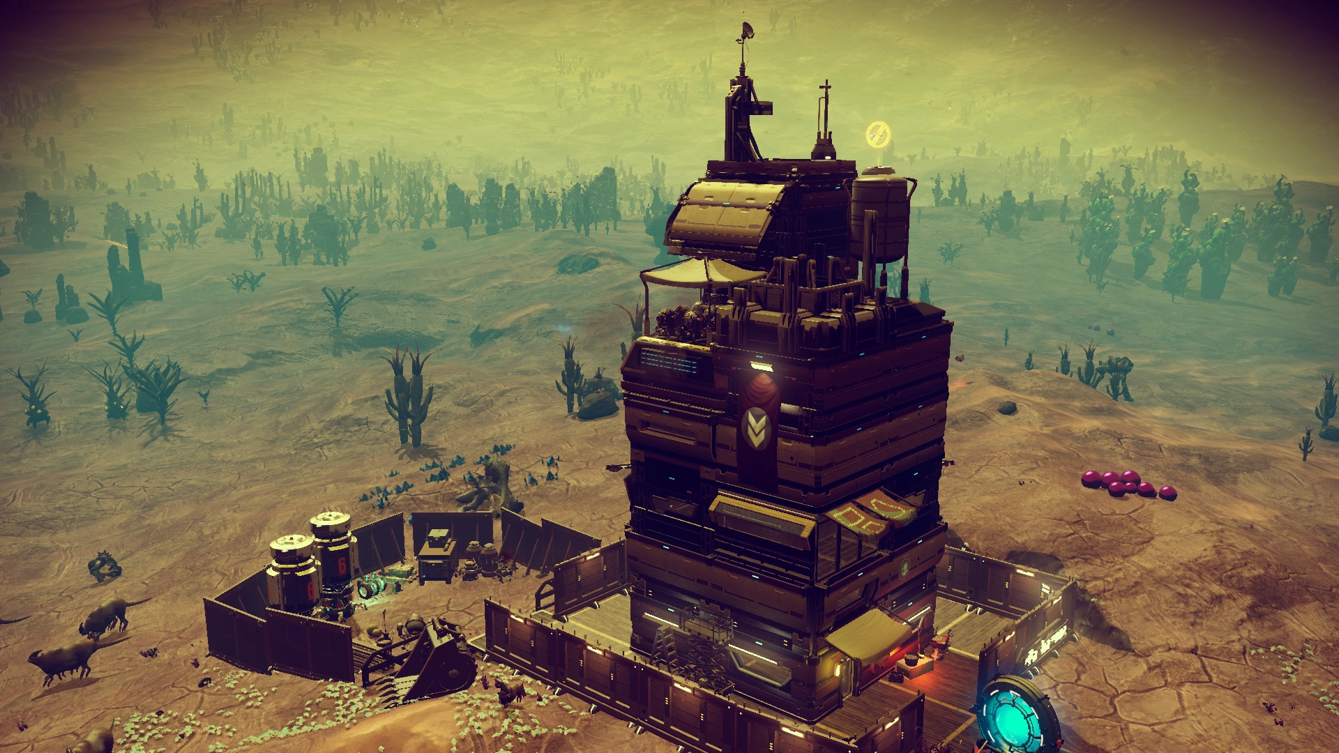 Bud-E factory | The Bud-E factory is an L-shaped facility in which the ‘Bud-E’ strain of NipNip is grown. Outside the front of the factory is a group of five landing pads. To the left of the factory is a crane which is lowering into the facility. | +5.23,-71.06 | MrMibblet |