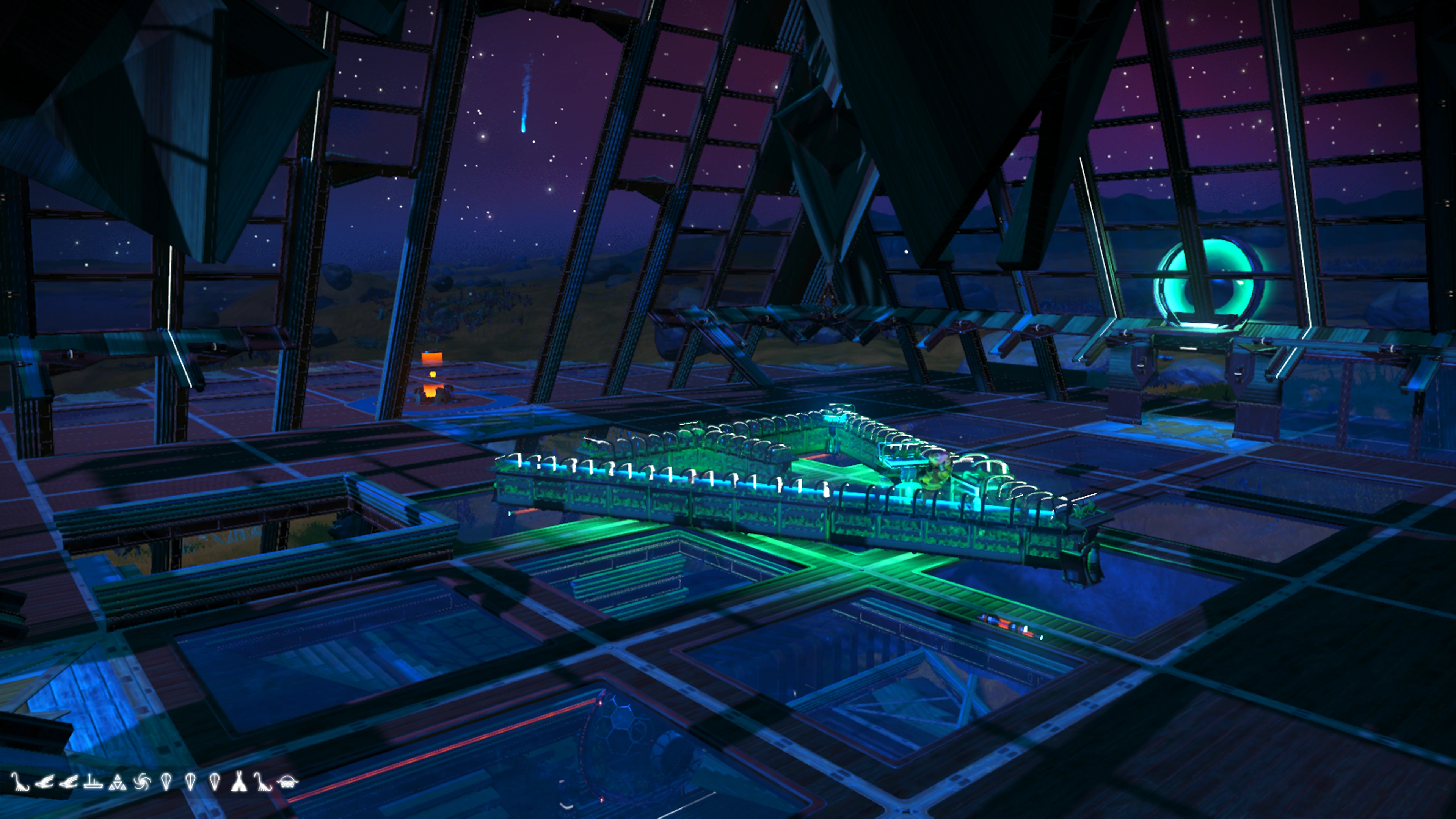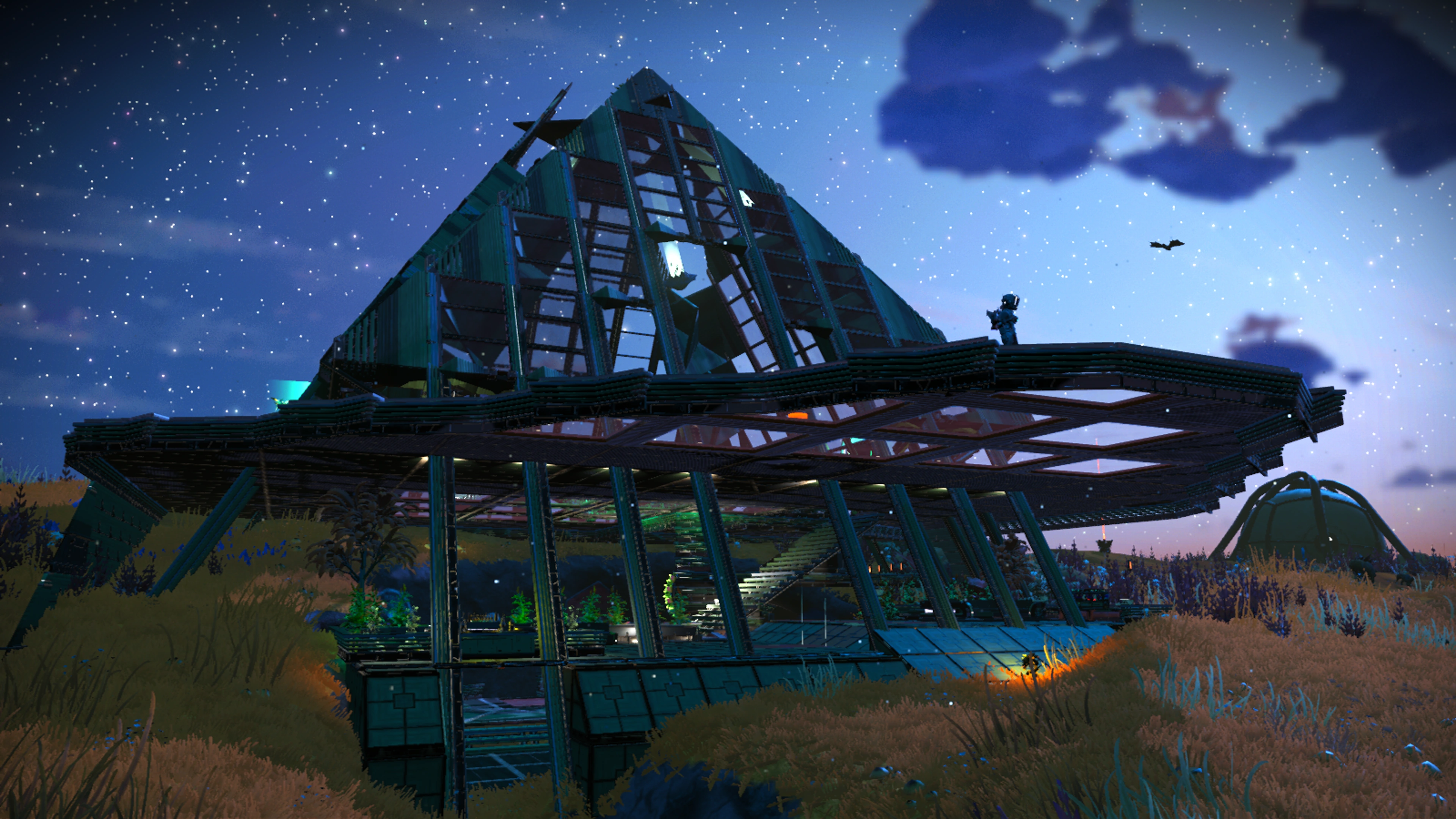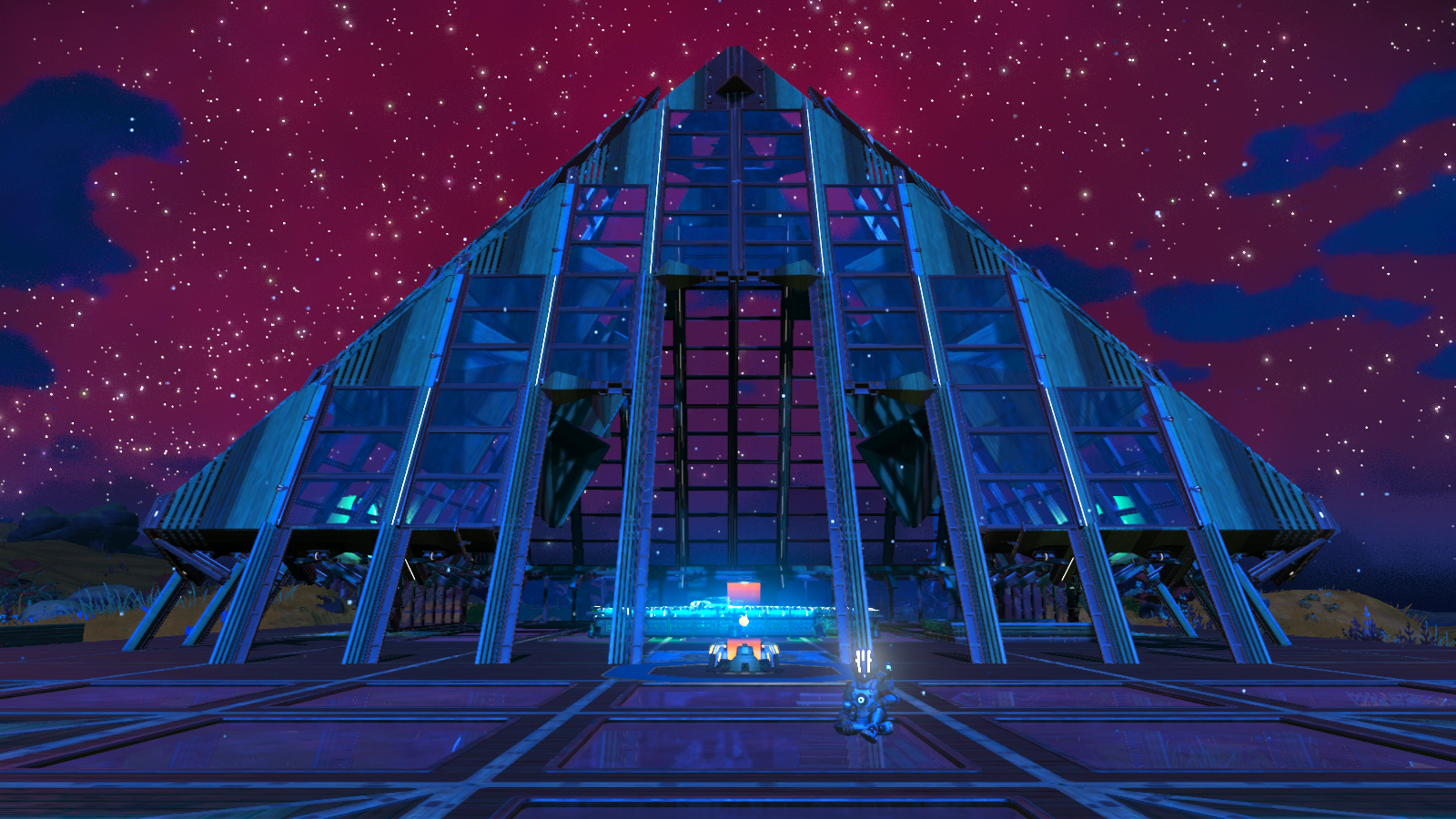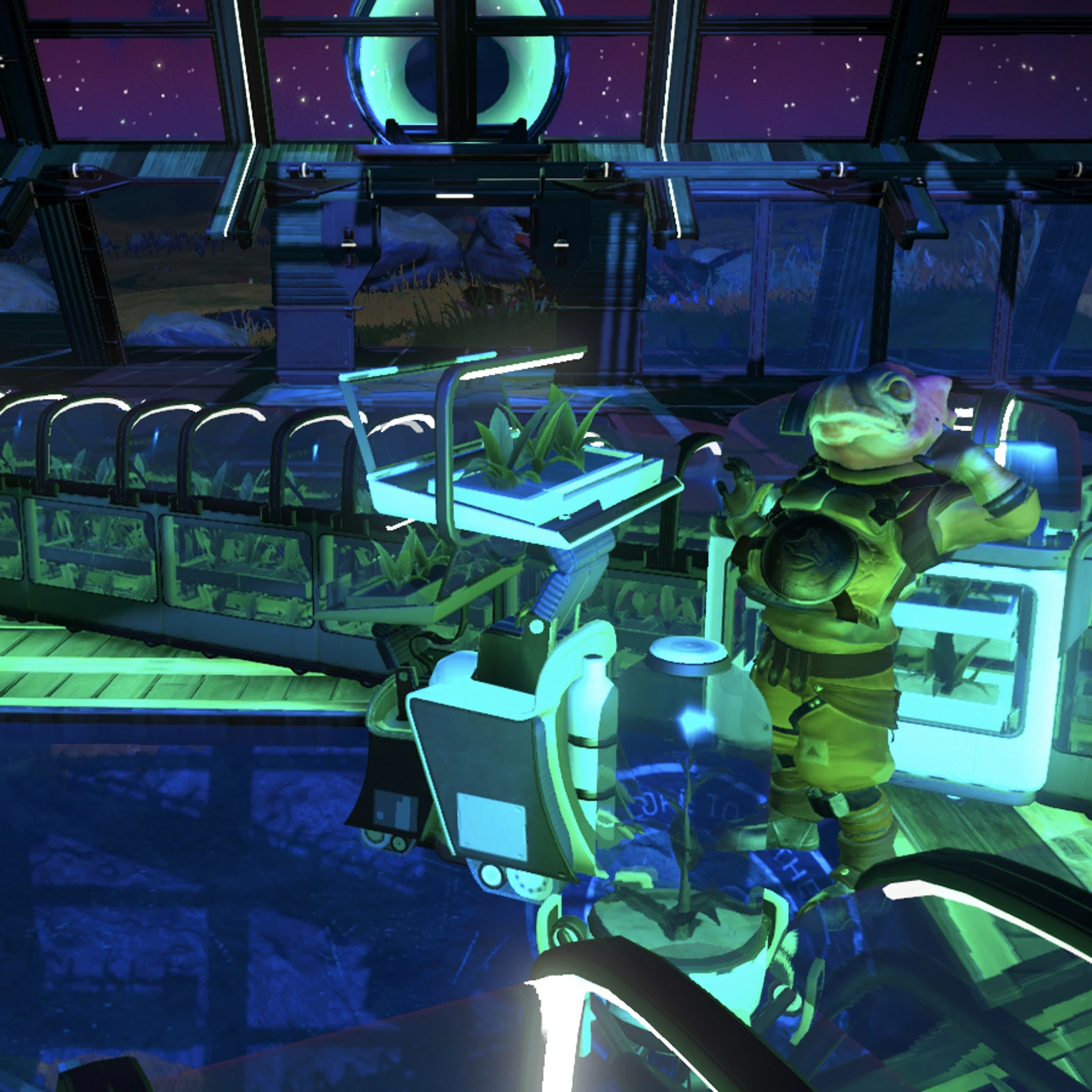 Using green wood to create a 'living building' concept, this pyramid structure hosts Nip Nip plants available for all galactic interlopers. The main floor is a Gek Nip dispensary, managed by our own farmer Gek, Merchant Erb. Underneath this, visiting interlopers will find another level broken up into an interior and exterior areas, including an outdoor lounge and indoor aquaponics research station.