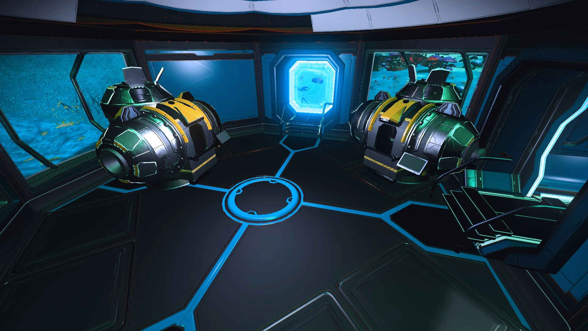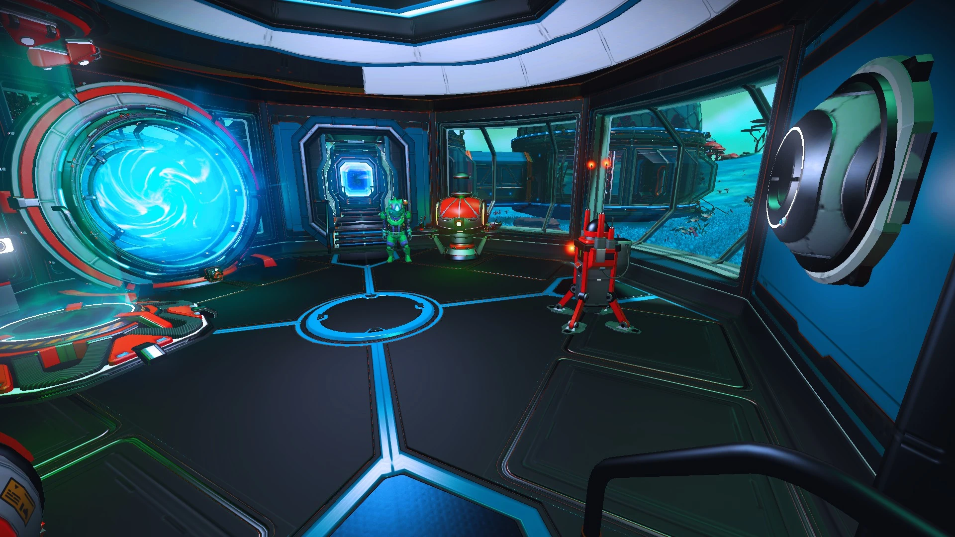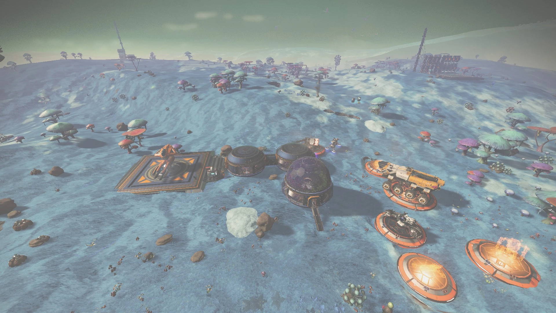 A landing pad connects to some Cylindrical Rooms and a Bio-Dome filled with NipNip. Take a Short-Range Teleporter to the Paraffinium]mine, or hop in your favourite Exocraft and jet over to the Nitrogen mine.