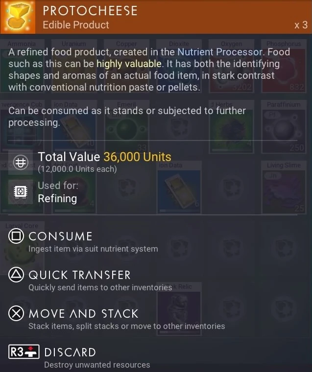 ProtoCheese is a consumable and one of the Edible Products.
