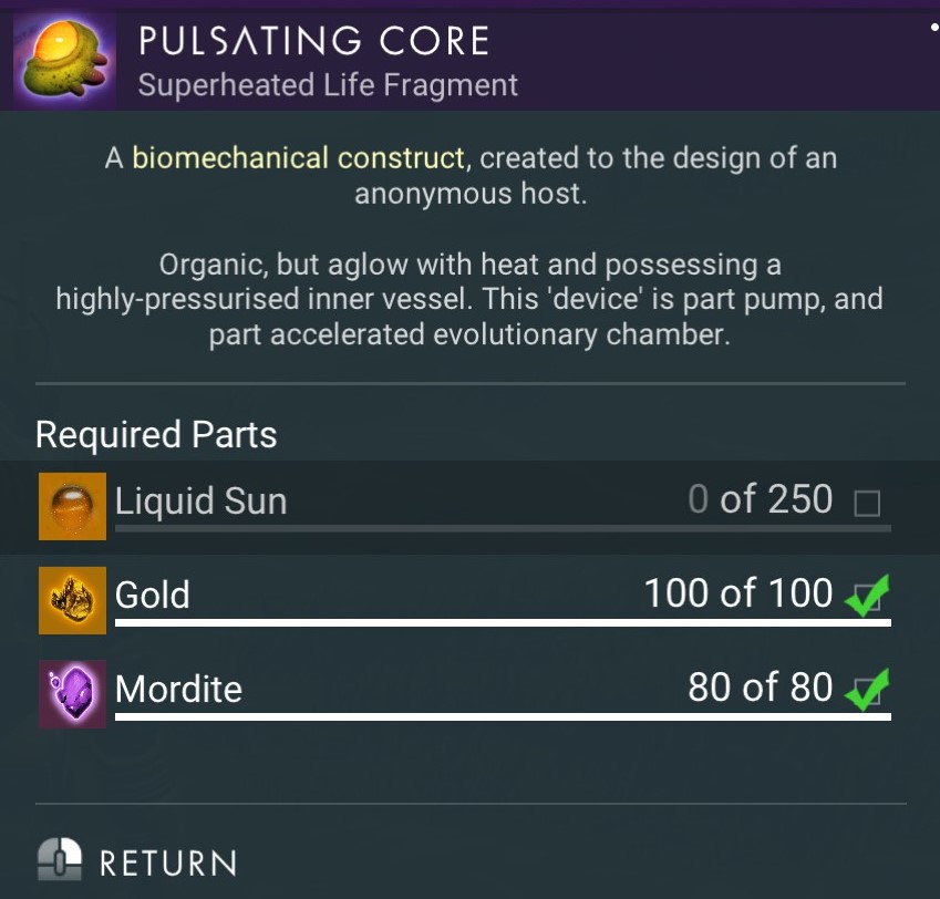 Pulsating Core can be built using a blueprint and the following ingredients: